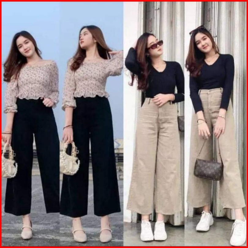 Celana Kulot Jeans Mozza Highwaist Celana Wanita Delonik Bawahan Warna Cream Mocca Boyfreind Kulot