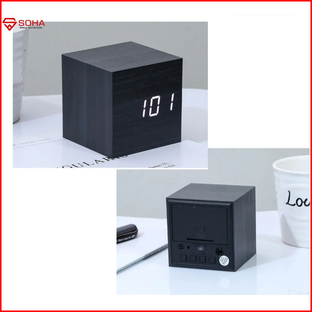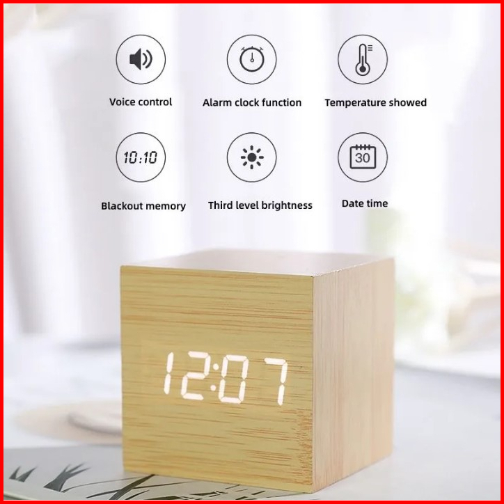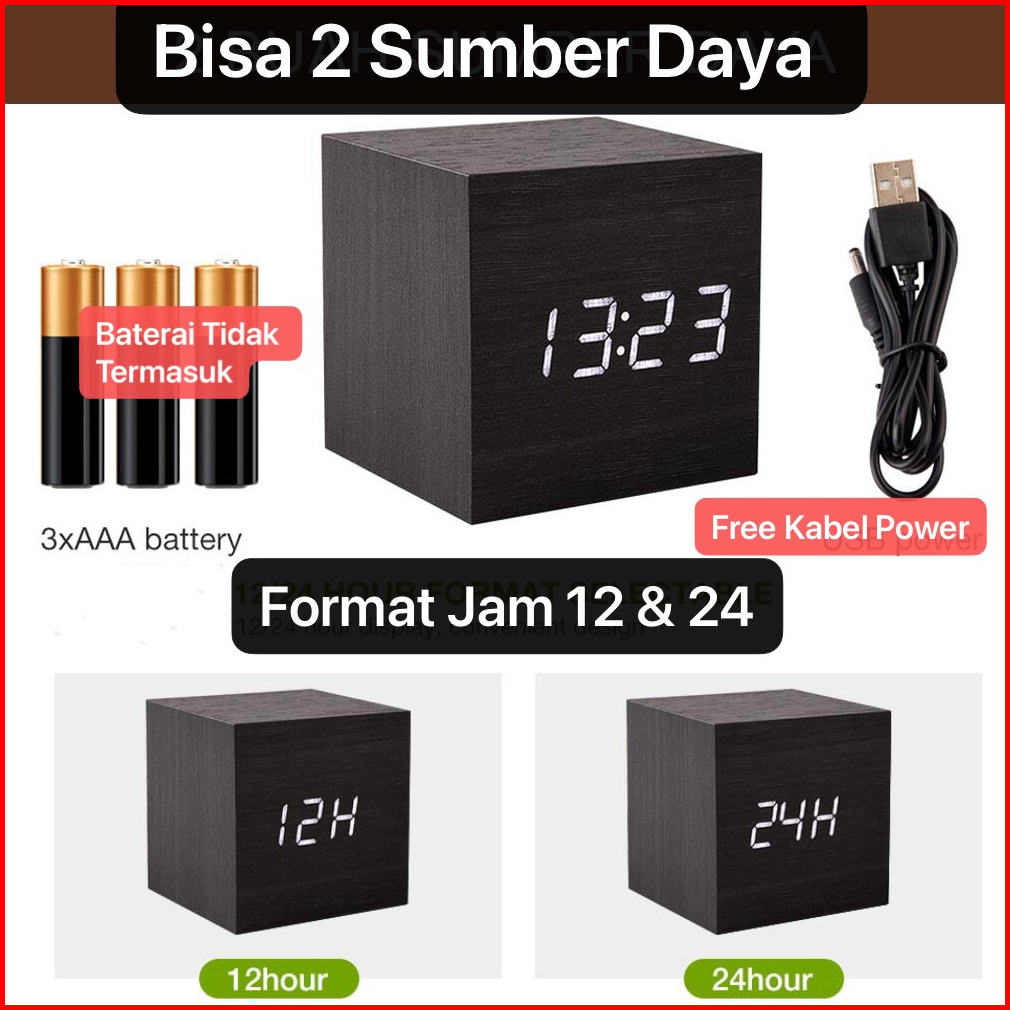 Jd-11 Jam Digital Kayu Led Jam Weker Desain Mini Motif Kayu Wooden Clock Jam Meja Alarm Suhu Temperature Date Tanggal Ja