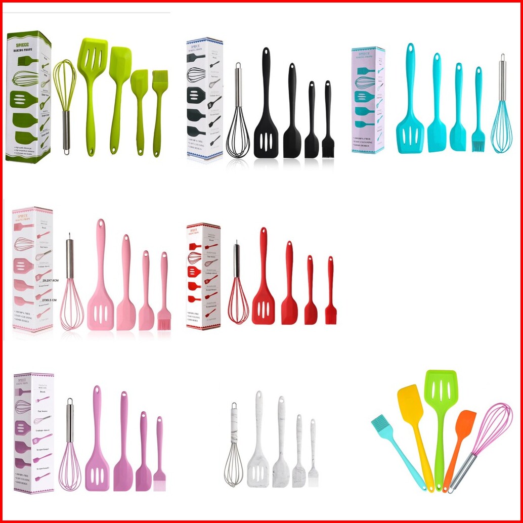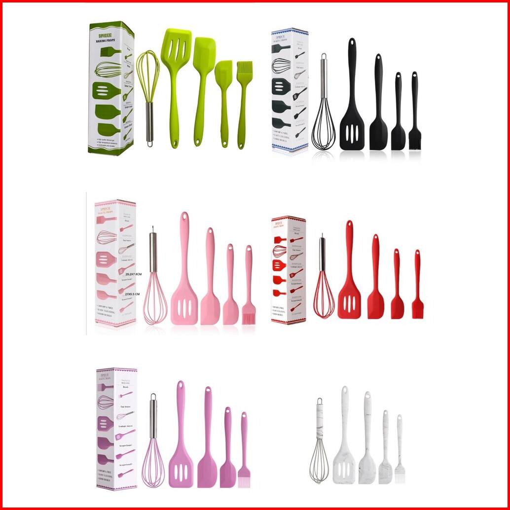 Logu Spatula Sendok Sutil Silikon Alat Dapur Set 5 In 1 Perlengkapan Masak Silikon Set