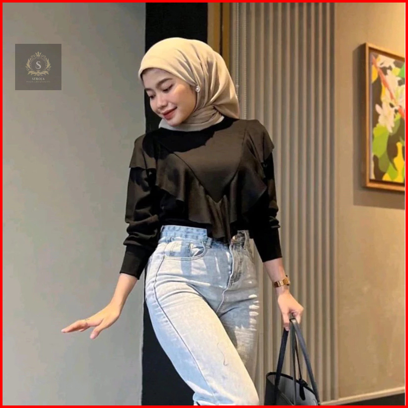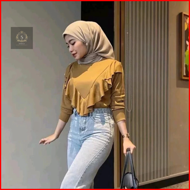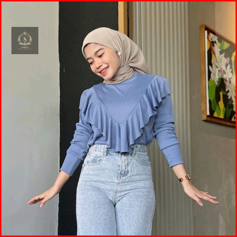 Ladies Sweater Ruffle Knit Blouse Wanita Korean Style