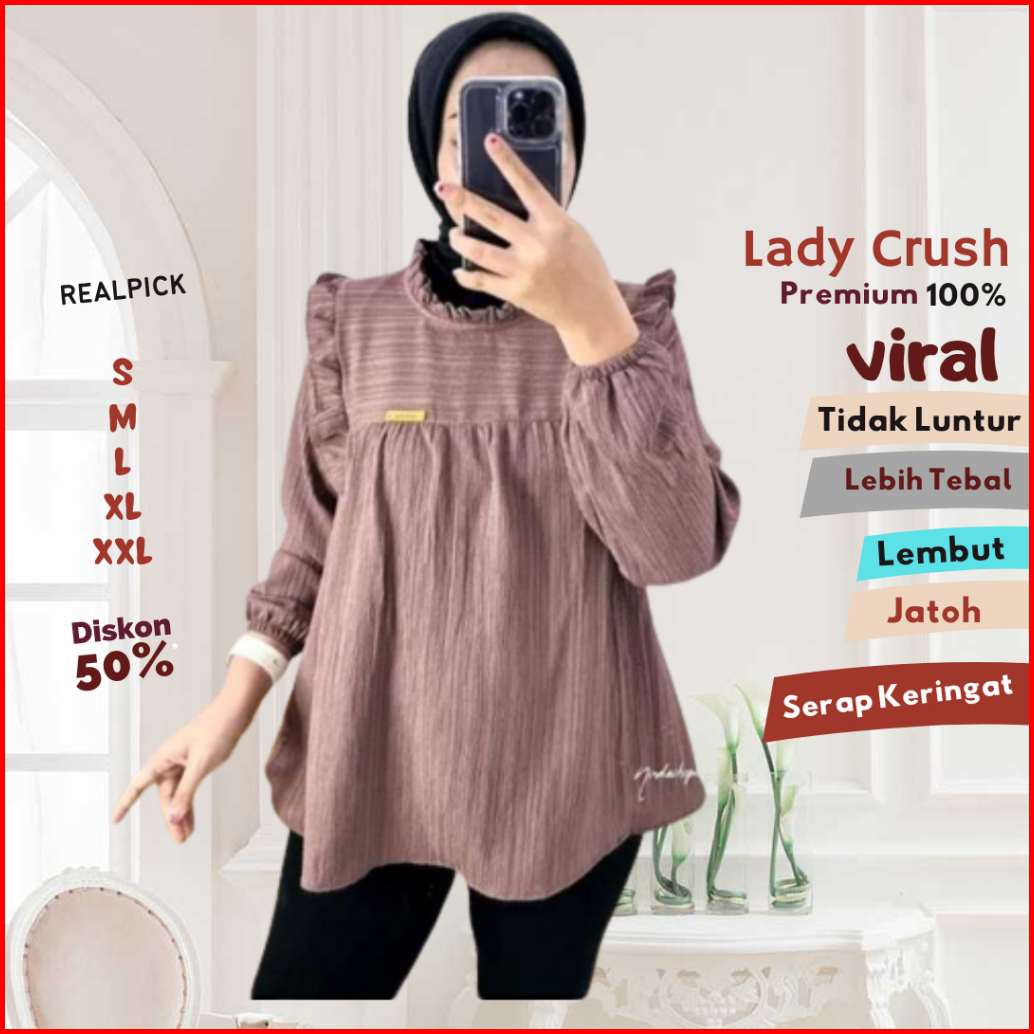 Lady Crush Atasan Wanita Blouse Viral Premium Lengan Panjang Kekinian Murah Blus Remaja Dewasa Terbaru Warna Polos Ukura