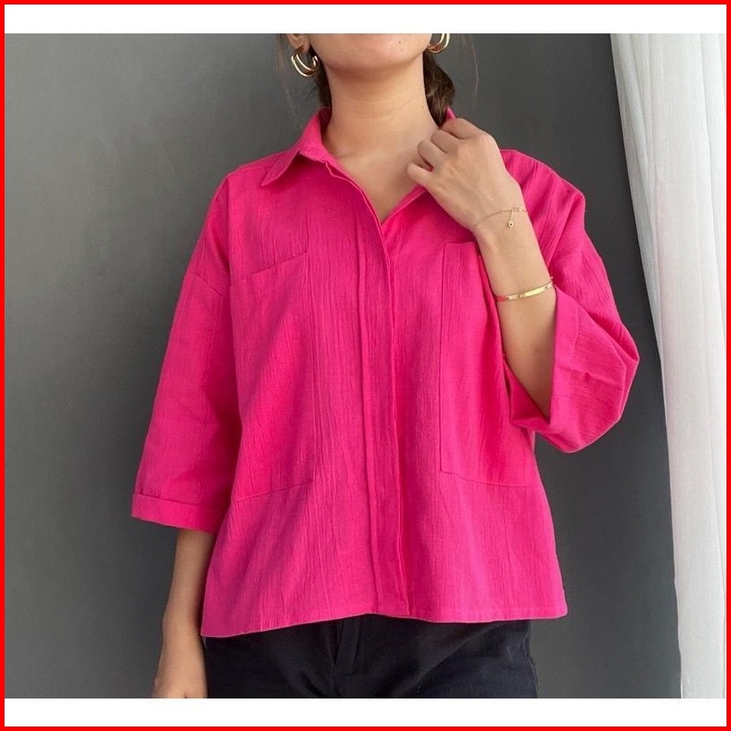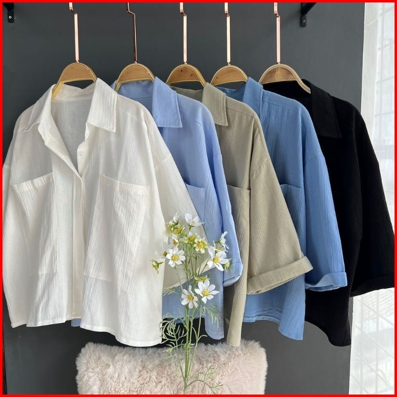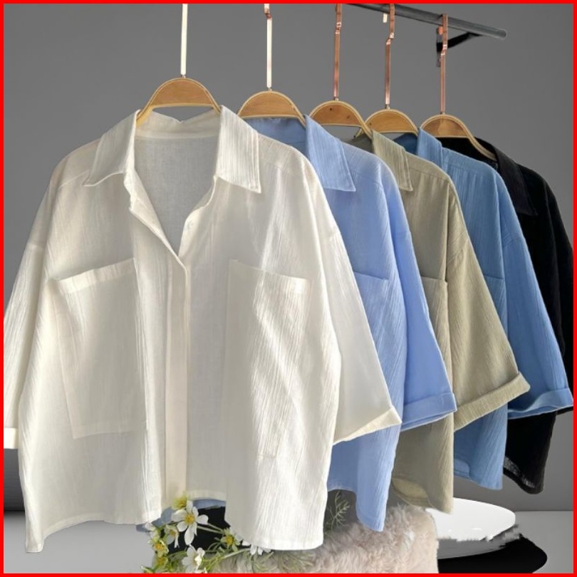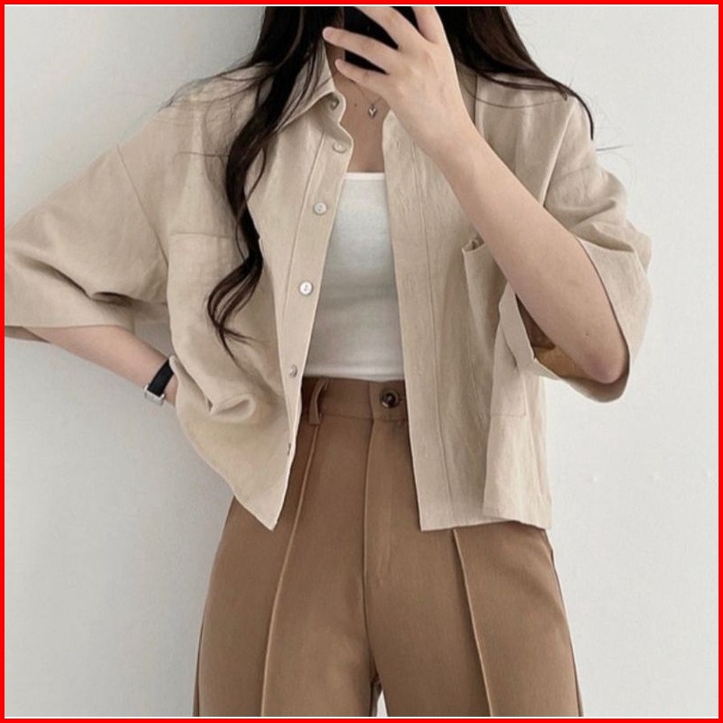 Kemeja Wanita Linen Korean Style Blouse Atasan Wanita