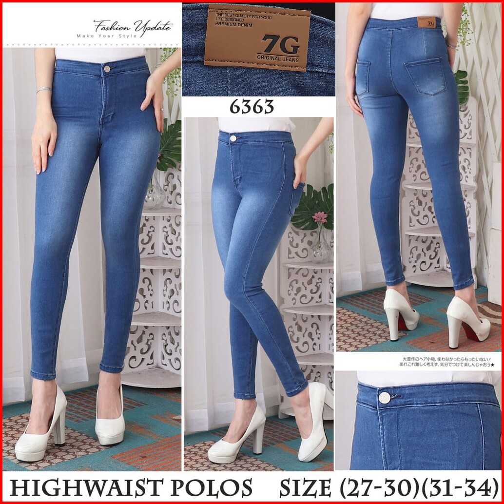 7c-g Celana Jeans Premium Highwaist Polos Pinggang Tinggi Jeans Streach 4 Colour 27 - 34