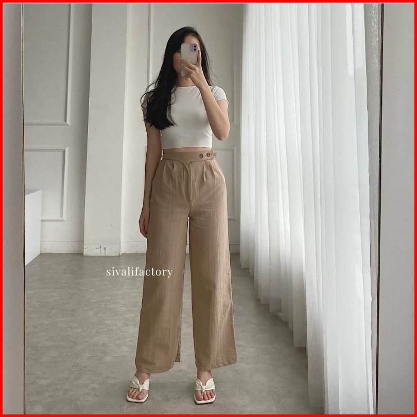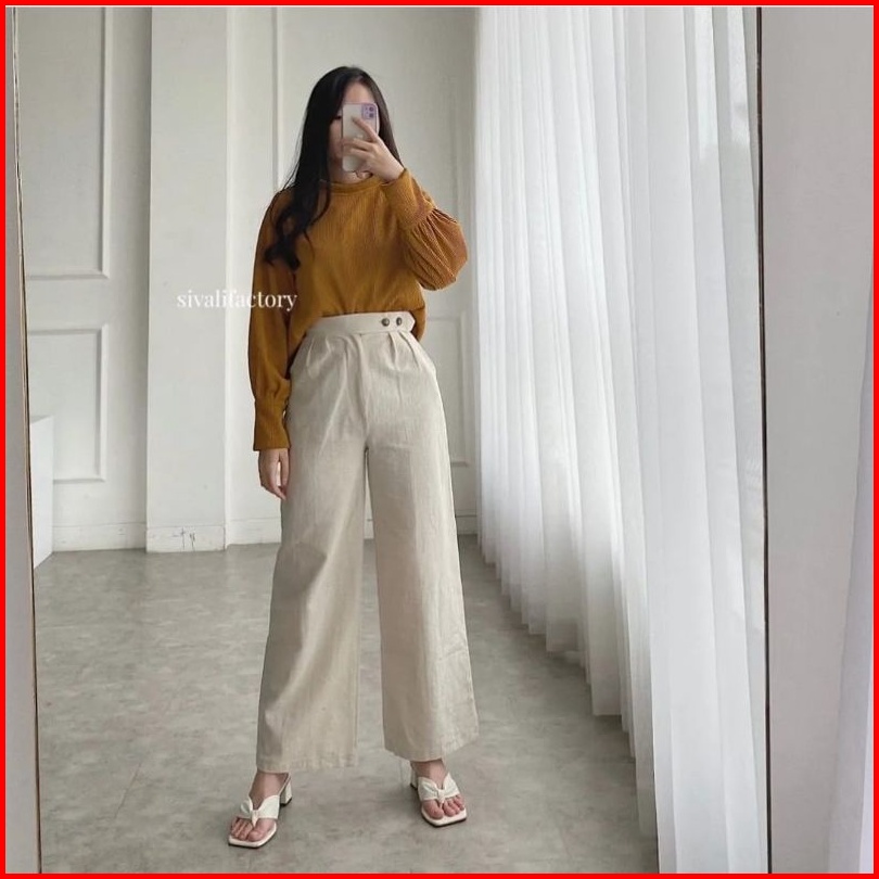 Celana Kulot Linen Haighwaist