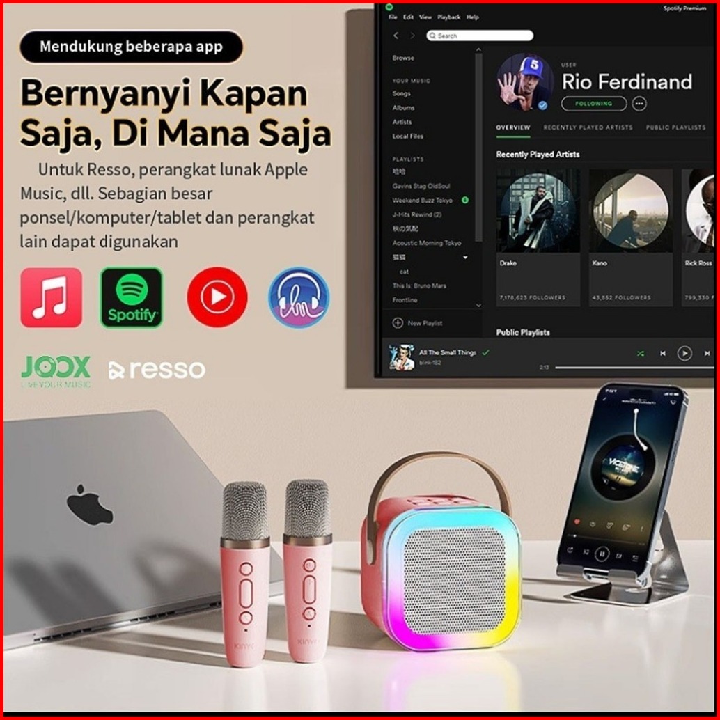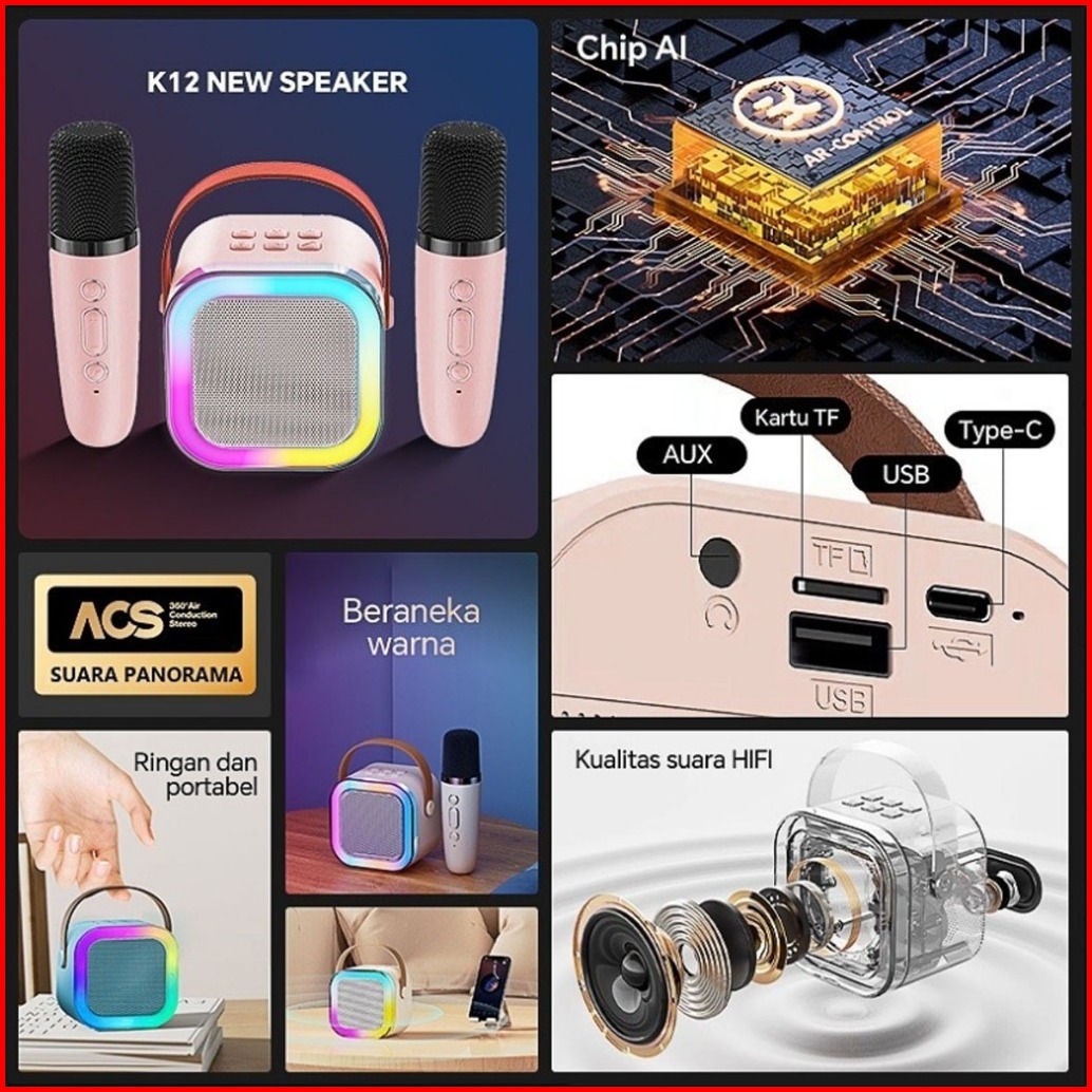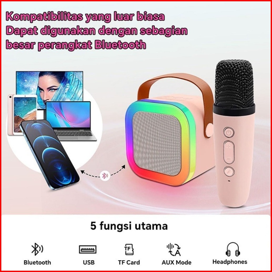 Speaker Bluetooth Portable 2 Mic1 Set Karaoke Set Bluetooth Mini Full Bass Portable Speaker Ktv Cute Wireless Lucu Porta