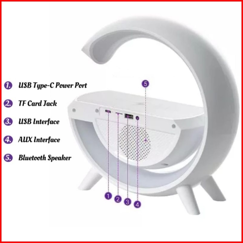 Speaker Bluetooth Wireless Charger Model G Lampu Meja Led Speaker Fm Radio Speaker Mrlion