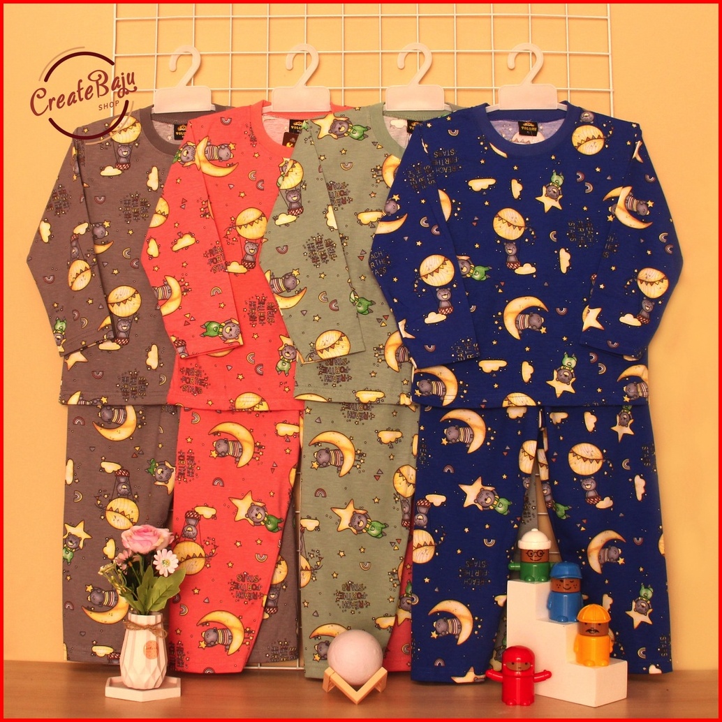 Piyama Kaos Anak Laki 1-7 Tahun Moon Bear Baju Tidur Anak Lengan Panjang Terlaris