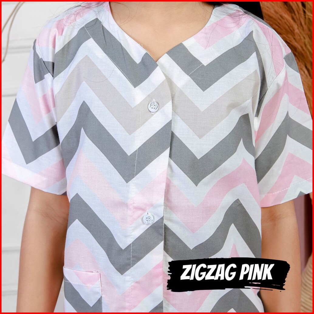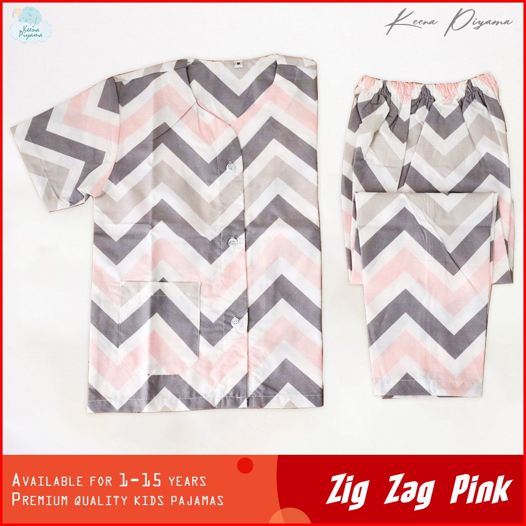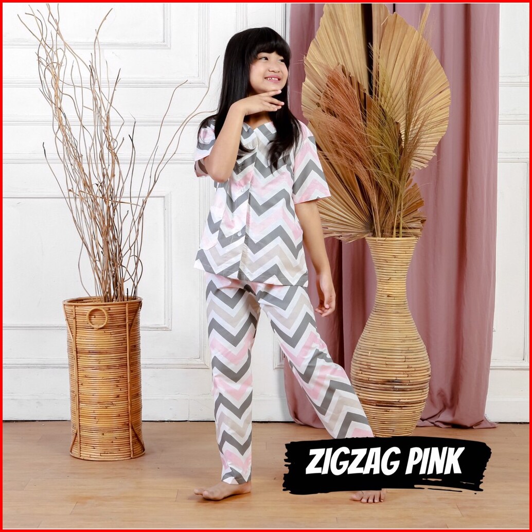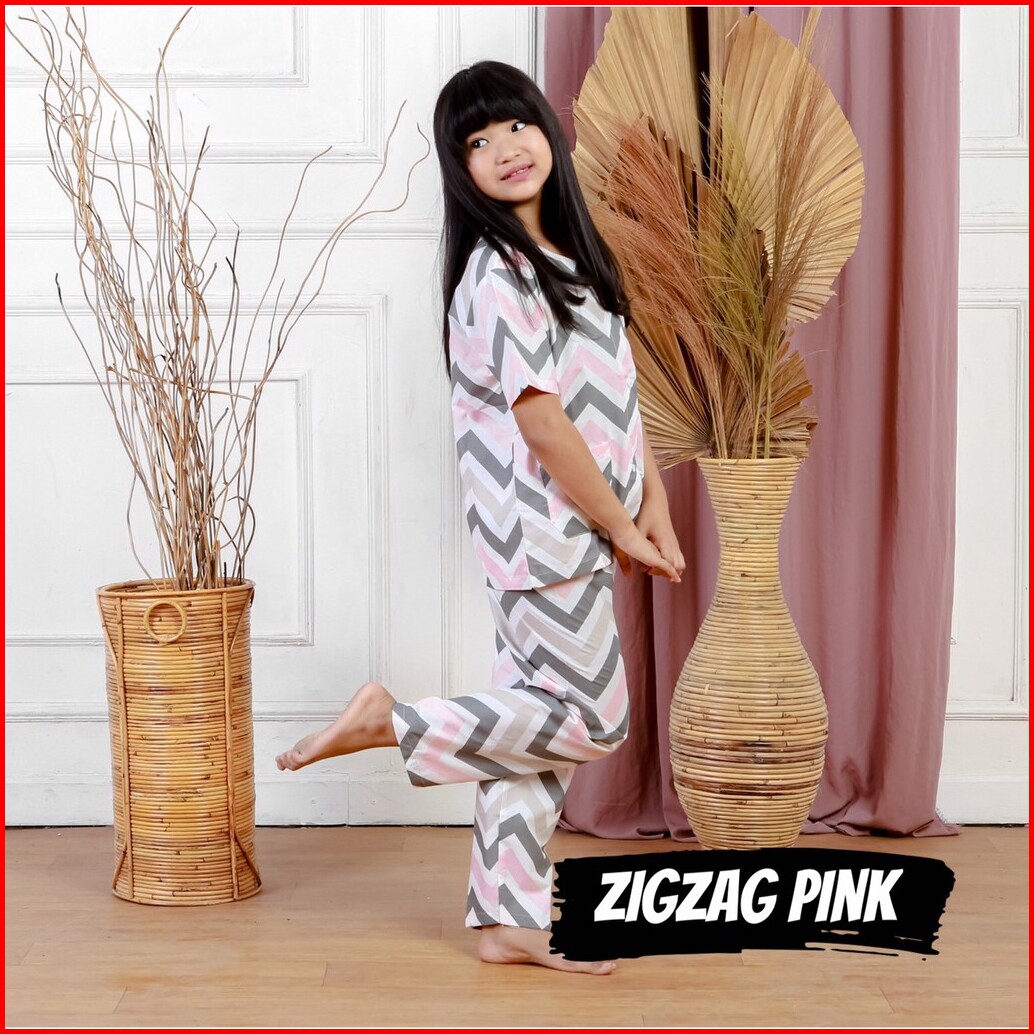 Piyama Anak Perempuan Baju Tidur Anak Cewek 1-15 Tahun Katun Motif Zig Zag Pink