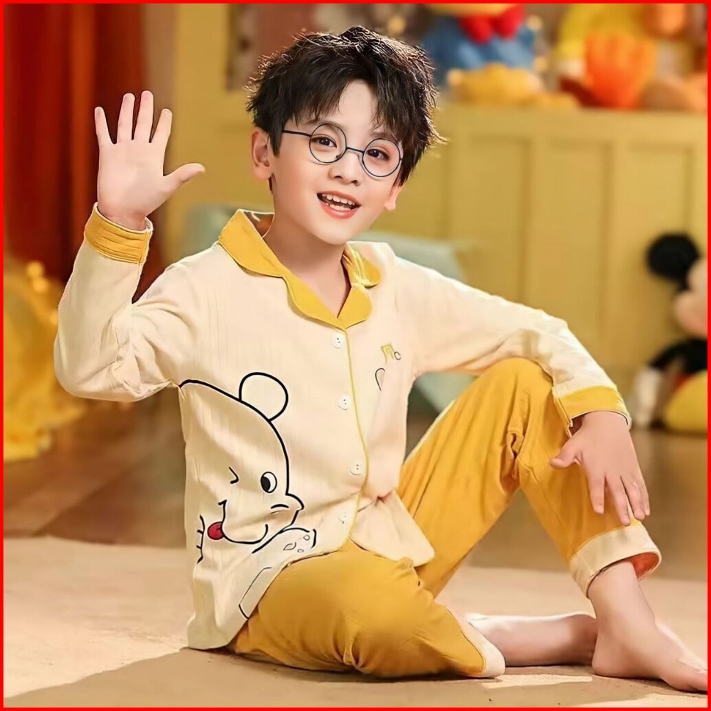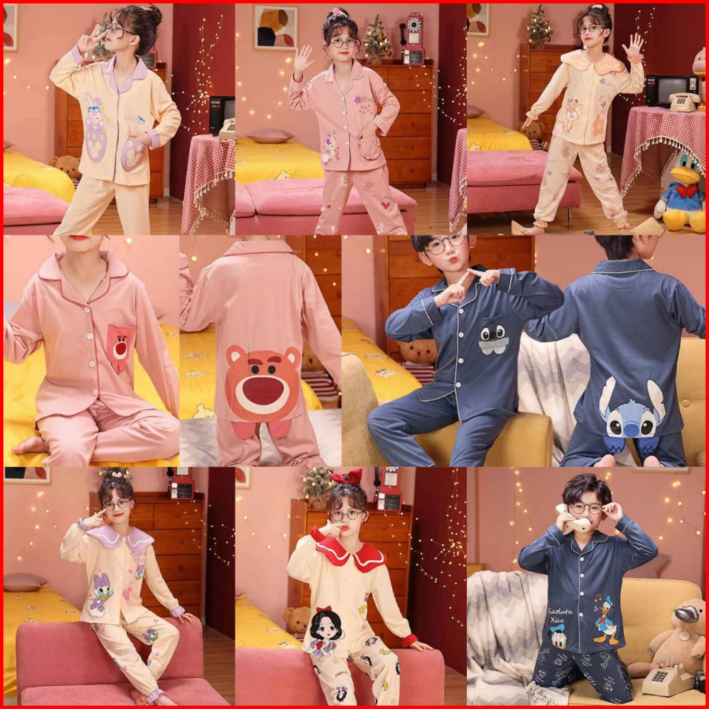 Gloryshop88 Setelan Baju Anak Unisex Karakter Lucu Baju Piyama Pp Baju Tidur Anak Lengan Panjang Baju Kaos Katun Organik