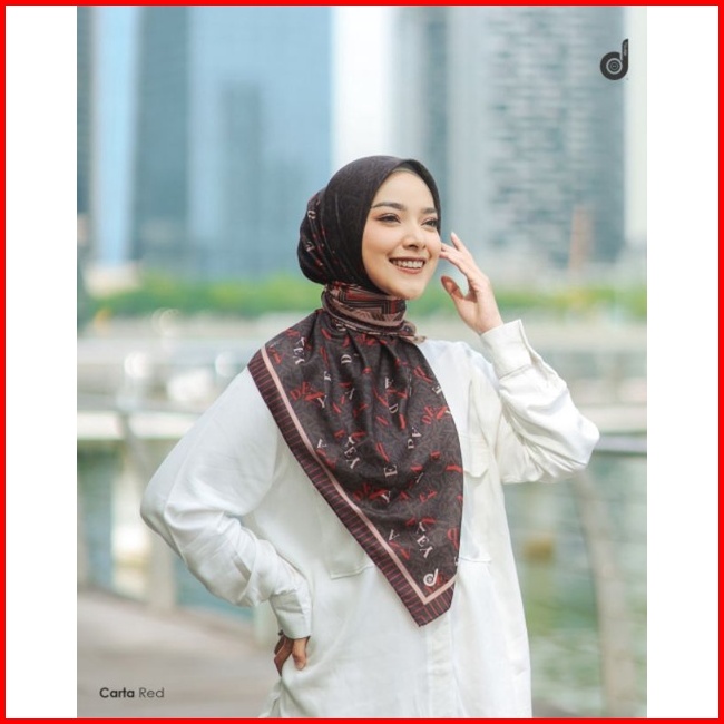 Deenay Elodie Fayla Erina Hikaru Haru Carta Series - Original Kerudunqg Hijab Jilbab Voal Print Segiempat Pashmina Terba