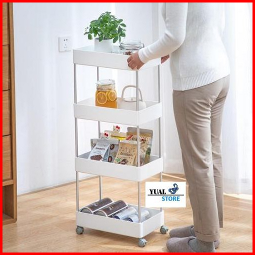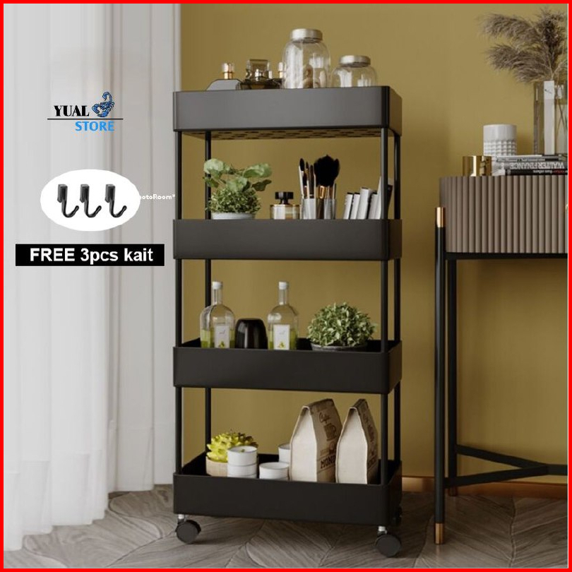 Rak Troli Square Rak Dapur Rak Kamar Mandi Rak Susun Serbaguna 4 Tingkat Dengan Roda Rak Penyimpanan Termurah