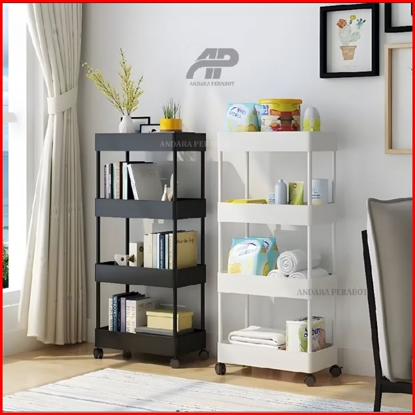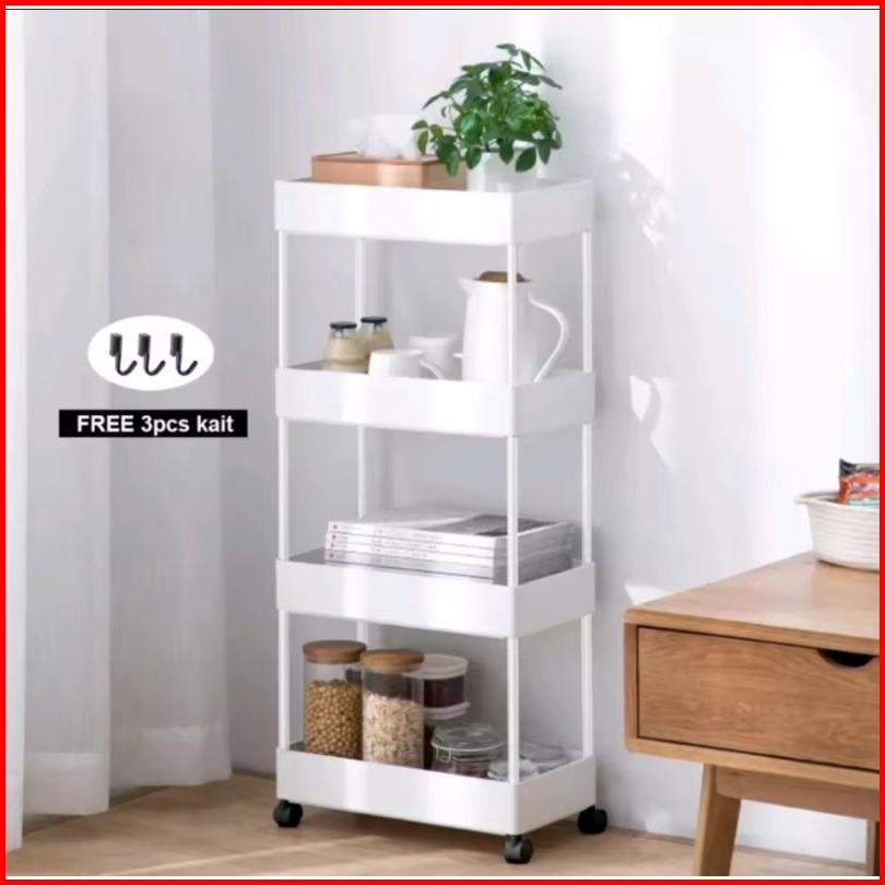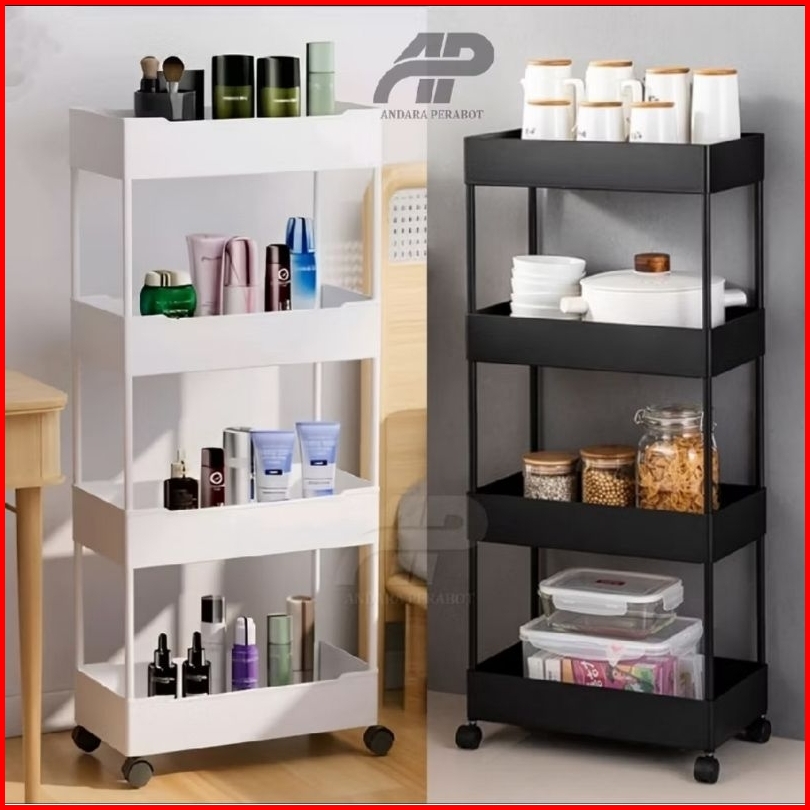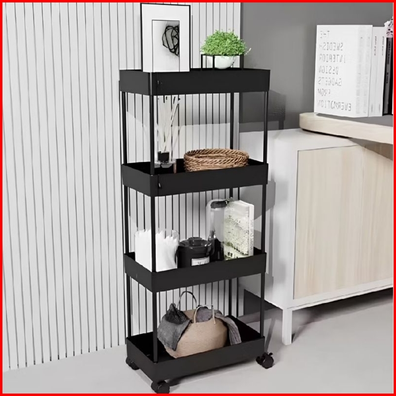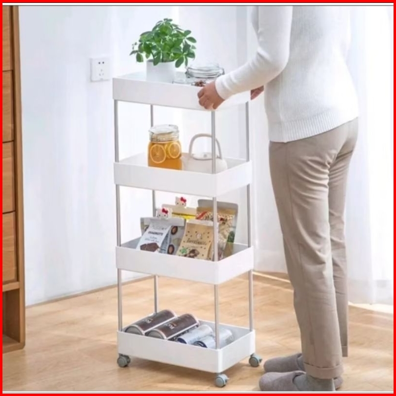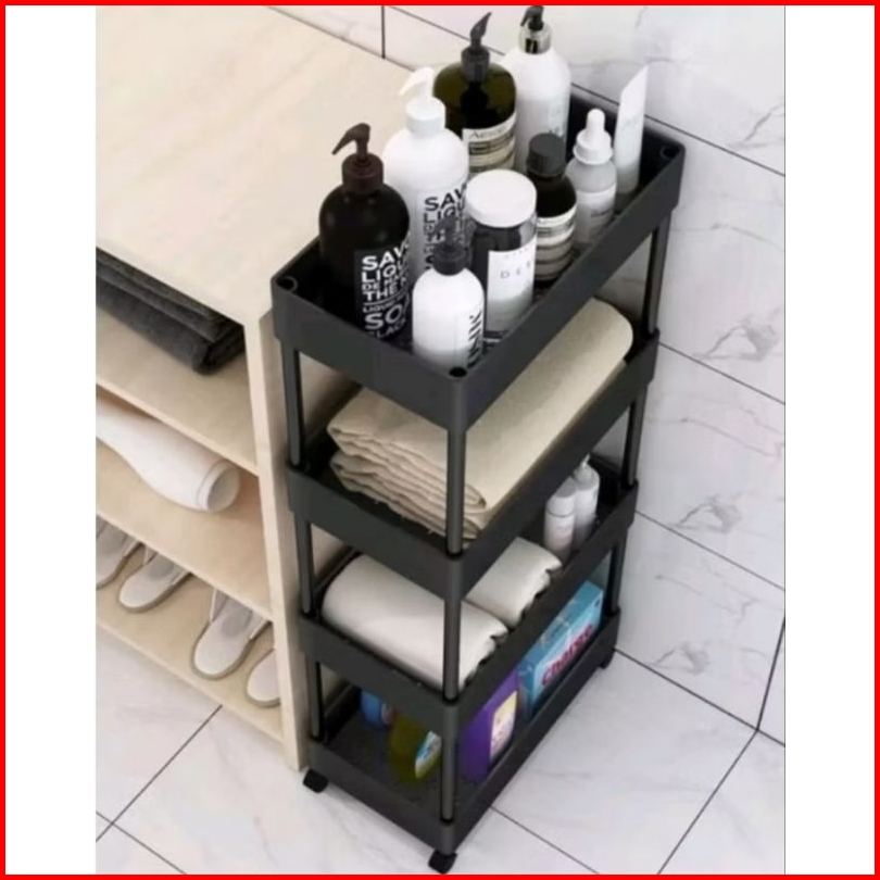 Rak Troli Susun 4 Roda Rak Penyimpanan Serbaguna Dengan Roda Rak Apartemen Rak Salon Rak Kamar Mandi