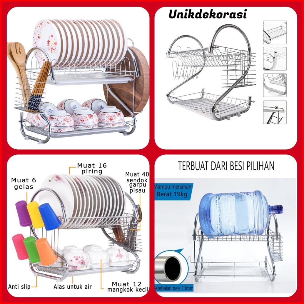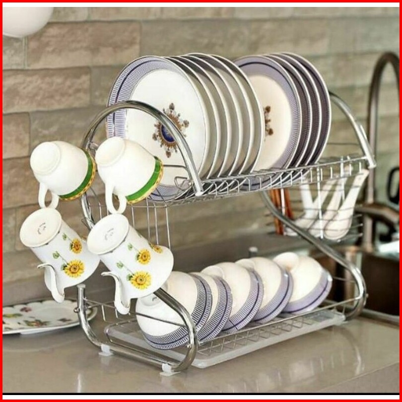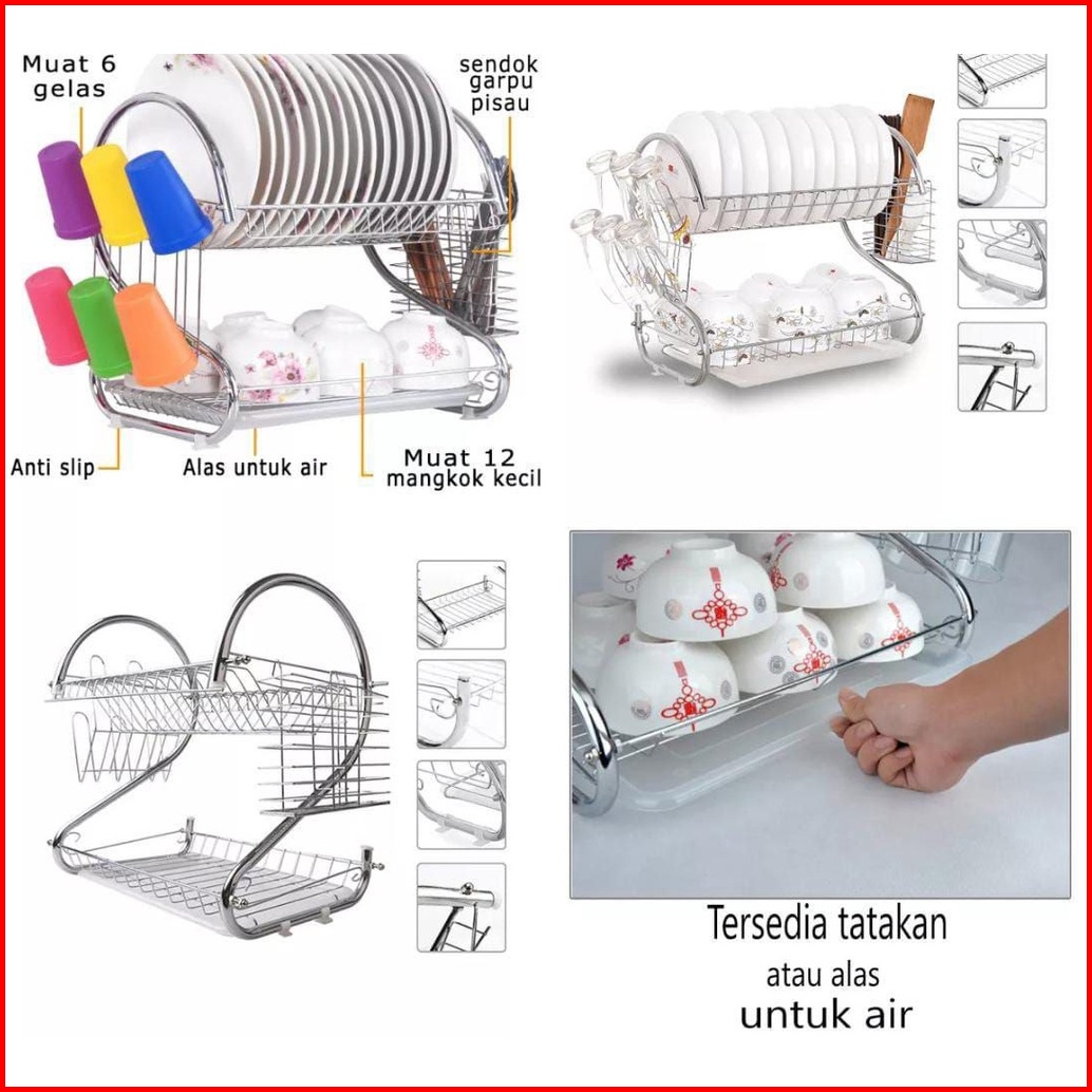 Rak Piring 2 Tingkat Rak Dapur Rak Cuci Piring Rak Penyimpanan Rak Piring Serbaguna