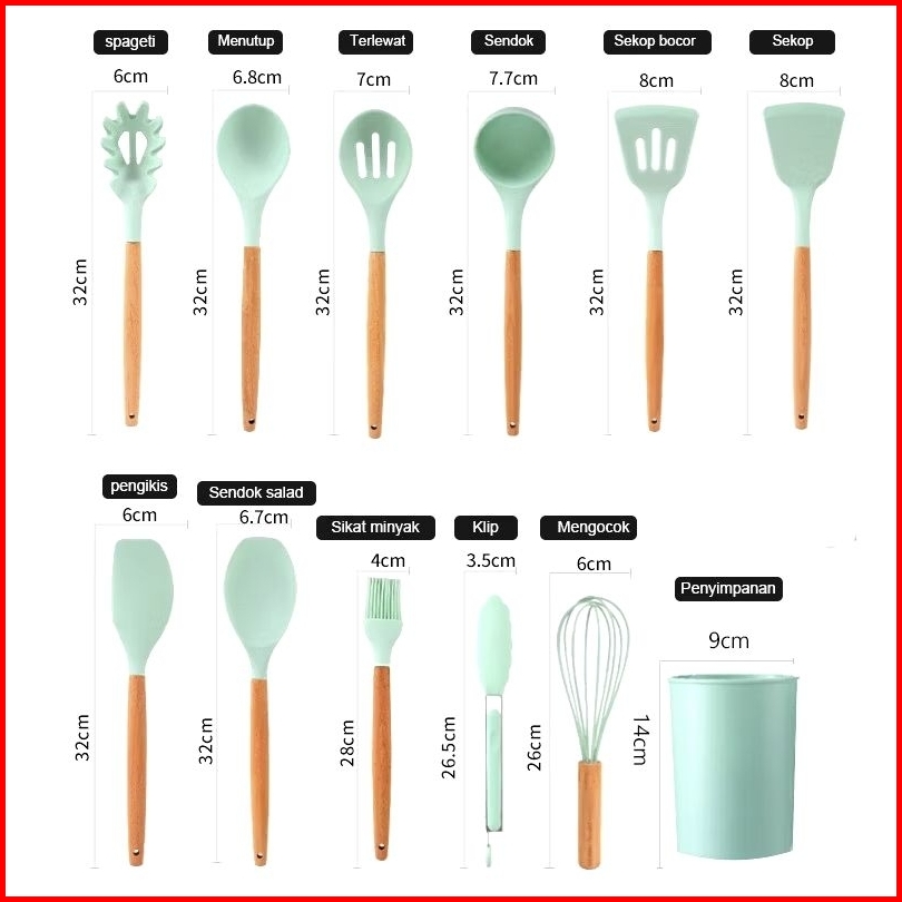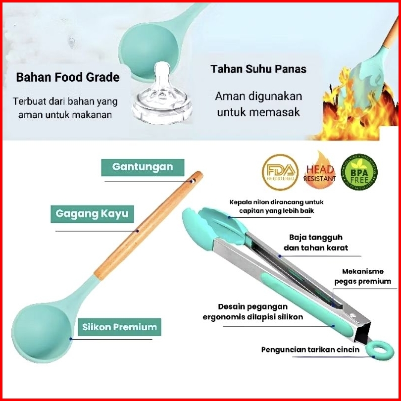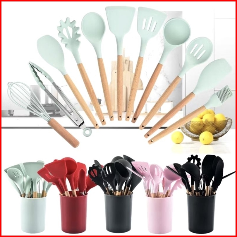 Ori 12in1 Set Spatula Silicone Kitchen Utensil Sutil Cooking Set Alat Dapur Masak Tumis Sodet Silkon