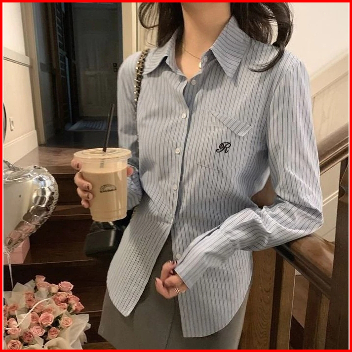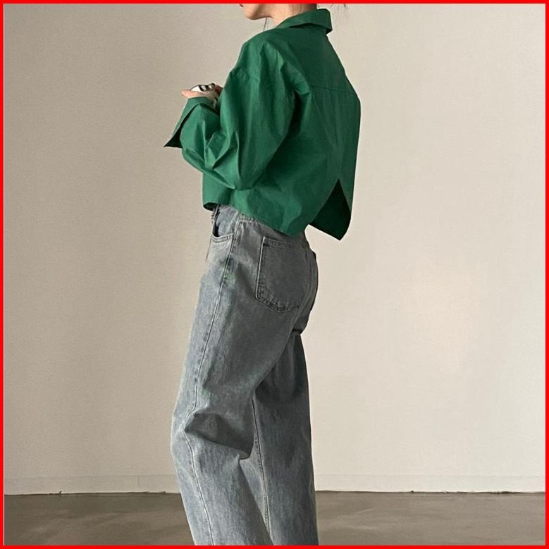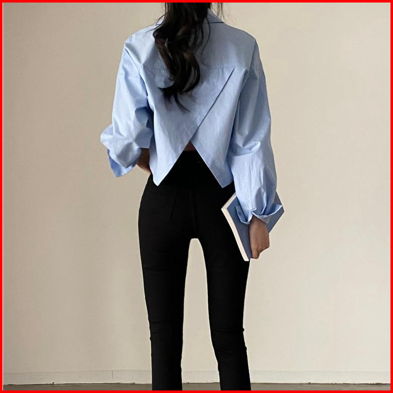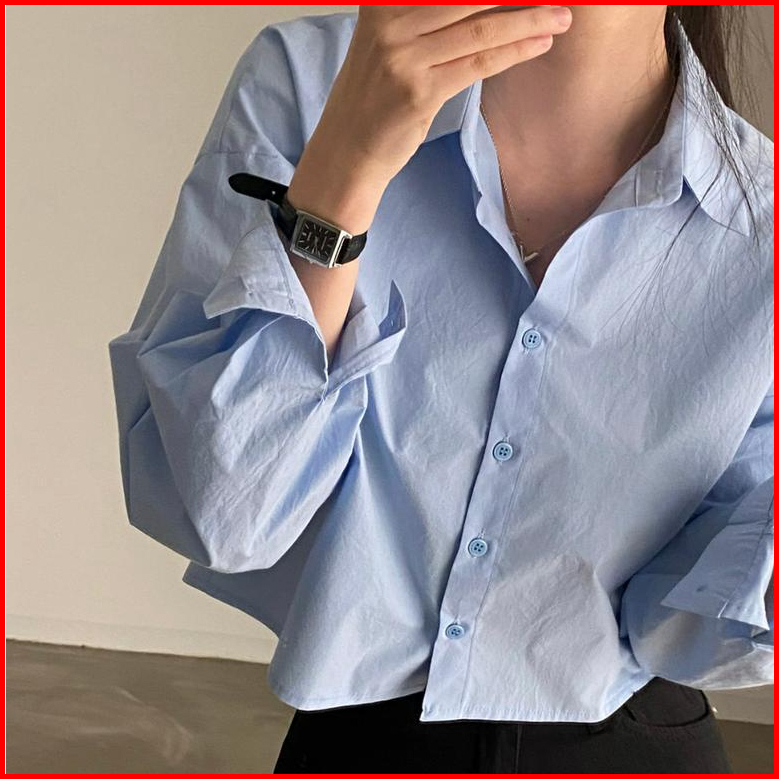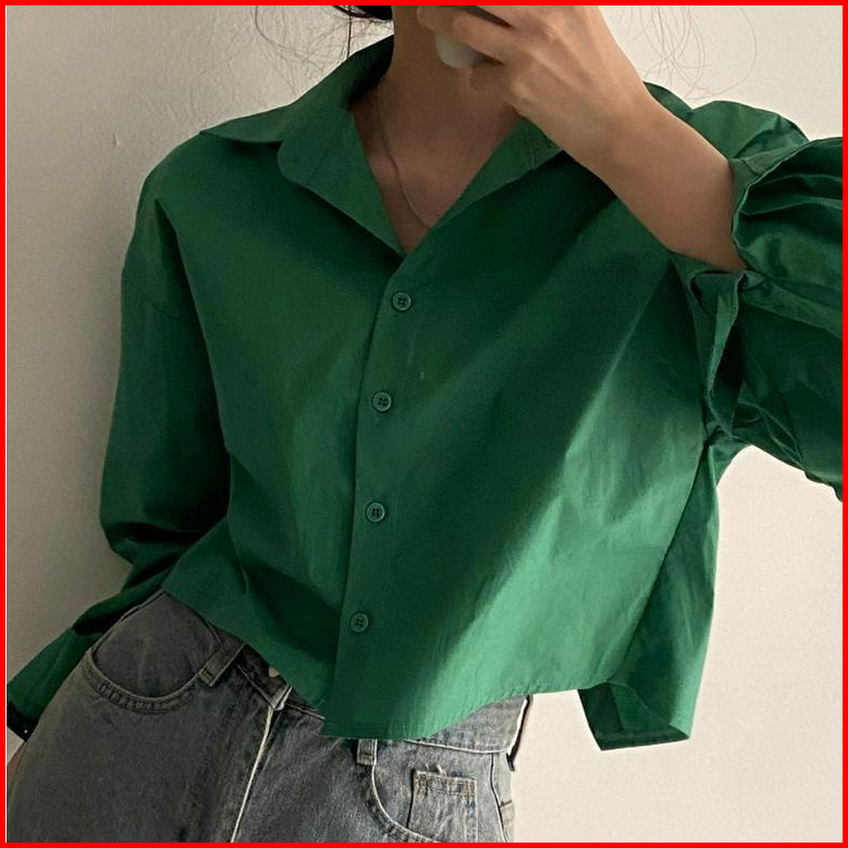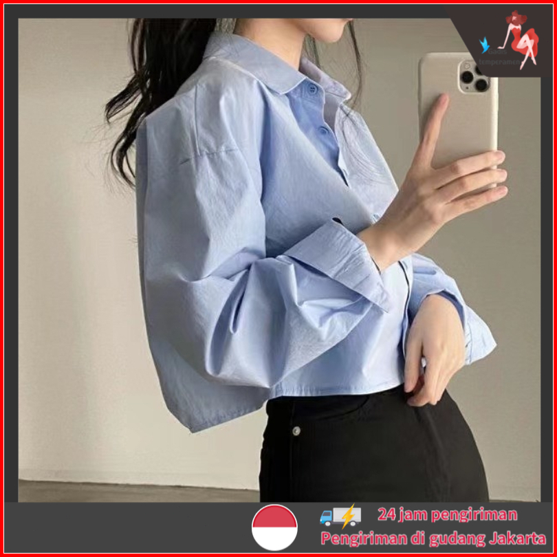 Karley - Kemeja Crop Polos Lengan Panjang Blouse Korea Kemeja Wanita Casual