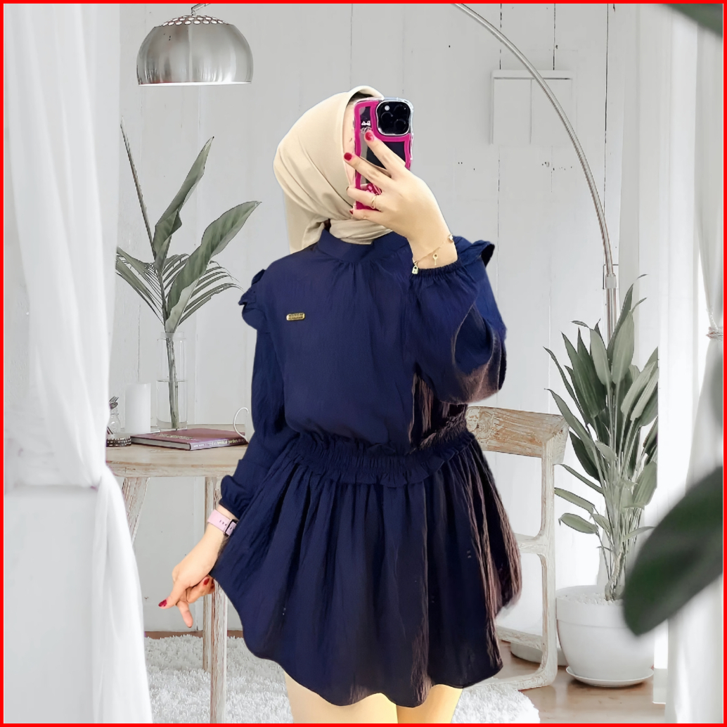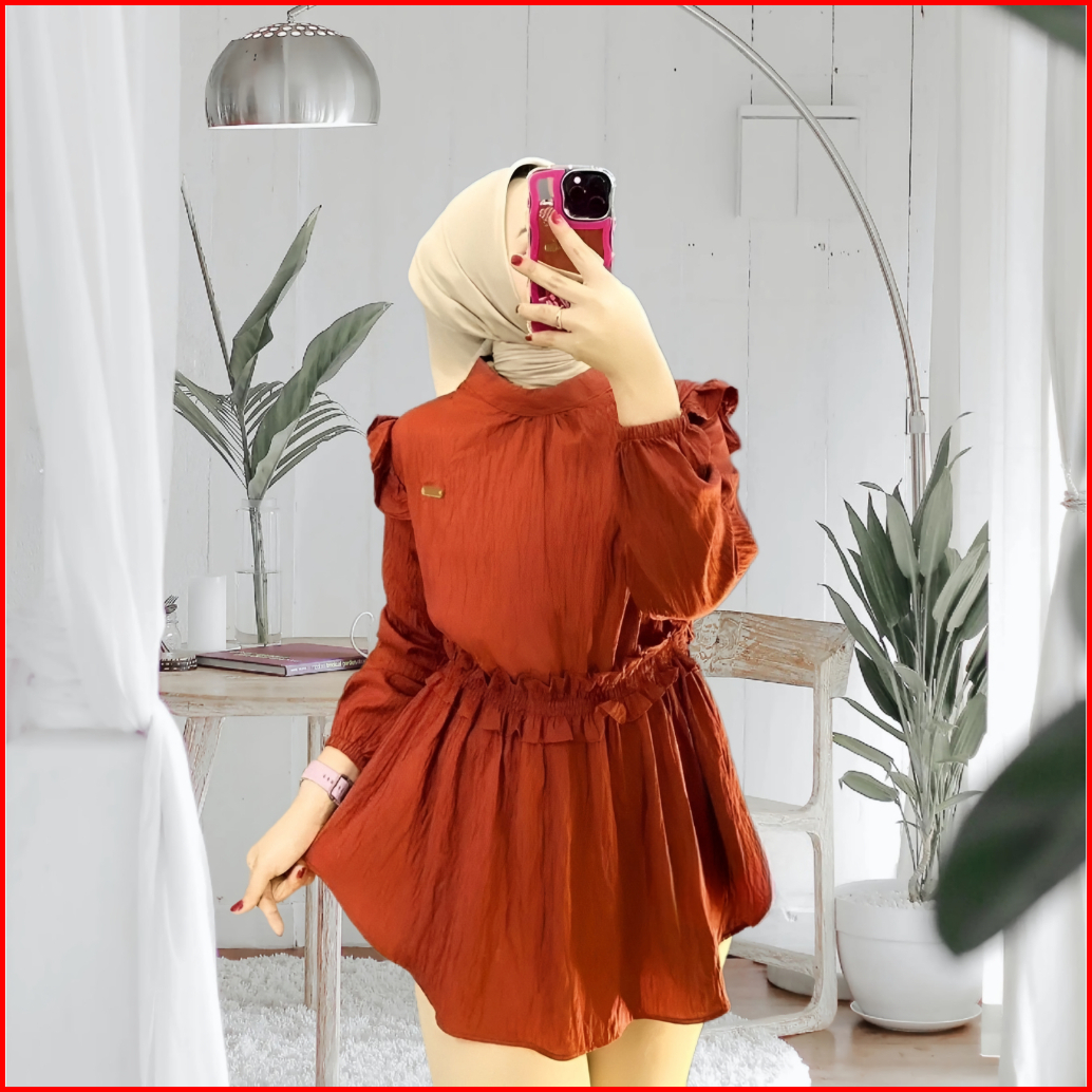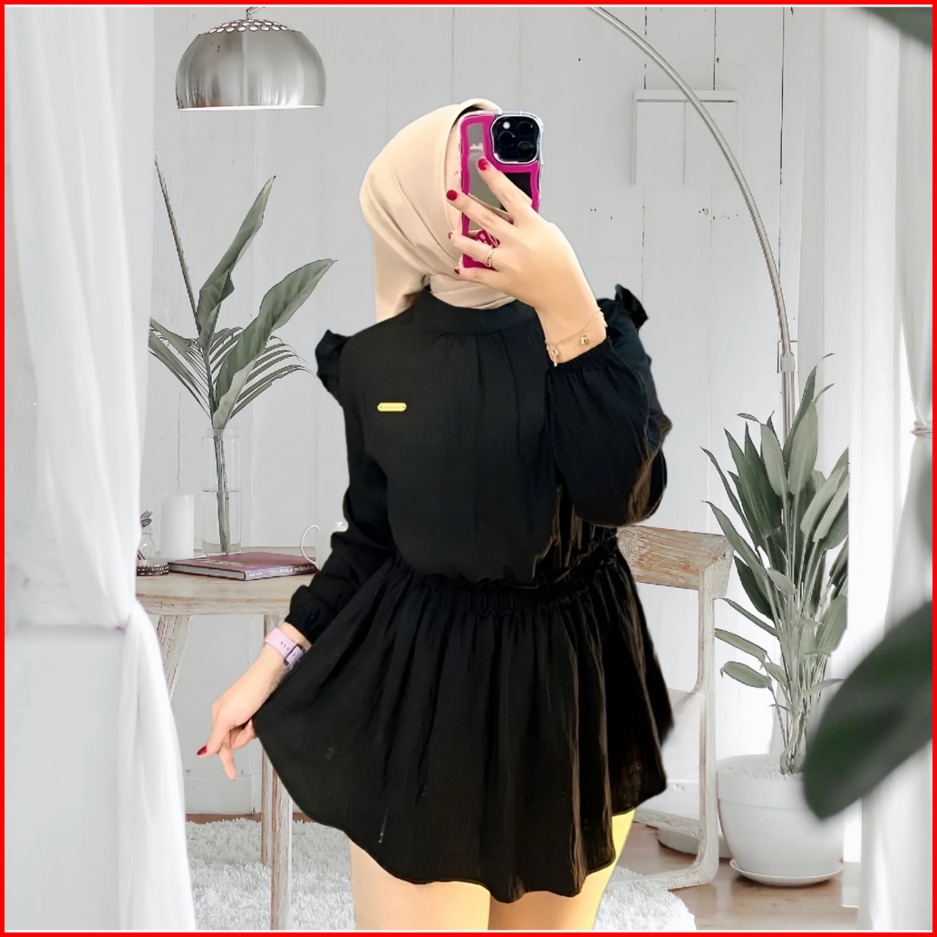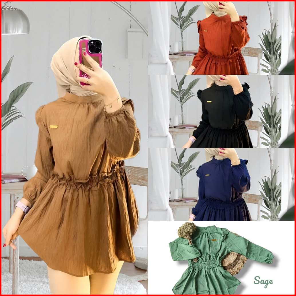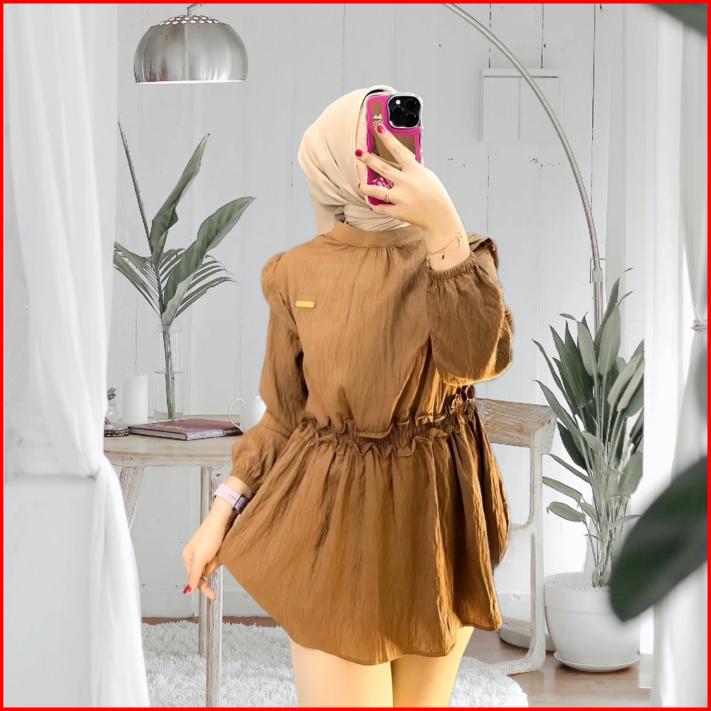 Atasan Nona Blouse Polo Linen Blouse Kekinian Atasan Polo Linen