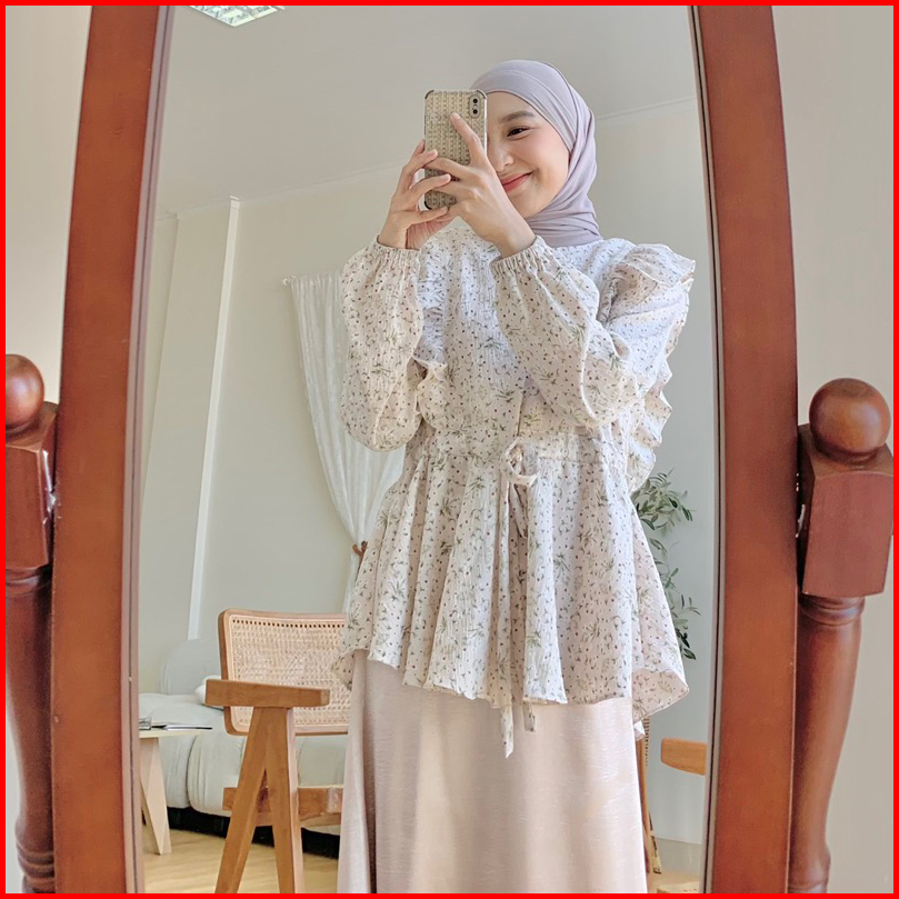 Kiyomi Blouse Blouse Floral Blouse Korean Look Blouse Wanita Motif Bunga