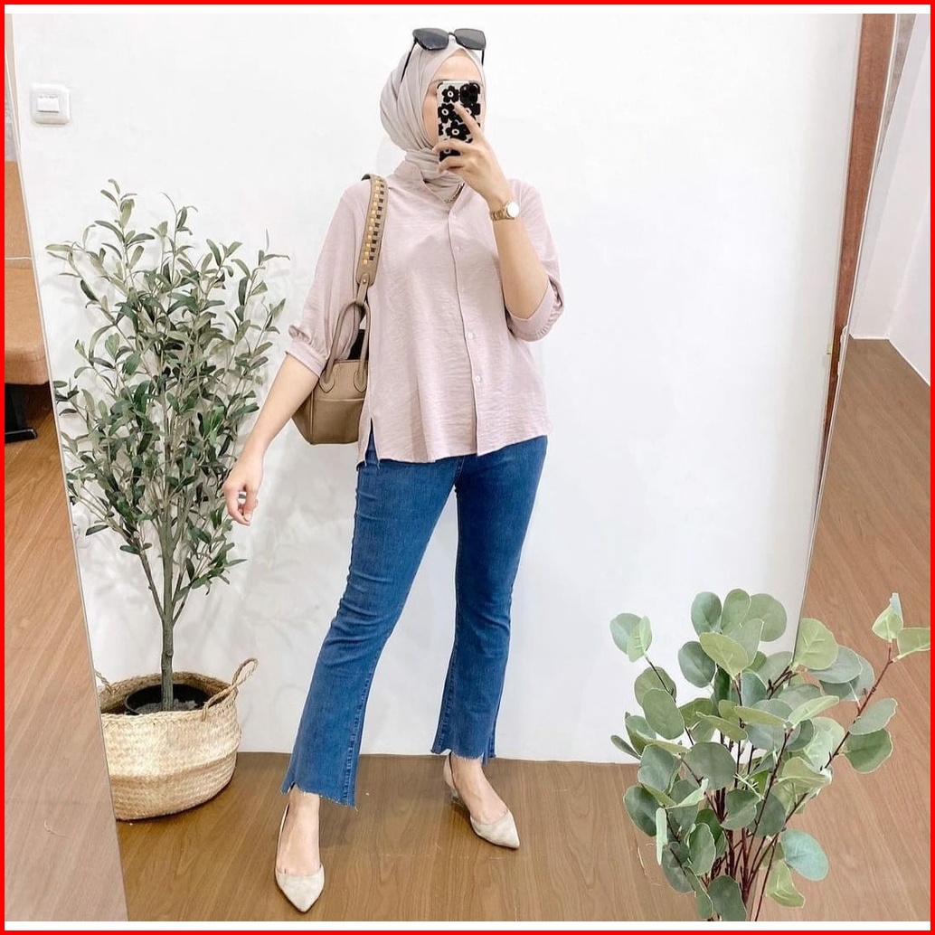 Atasan Wanita Rania Top Bahan Crinkle Air Flow Kemeja Wanita