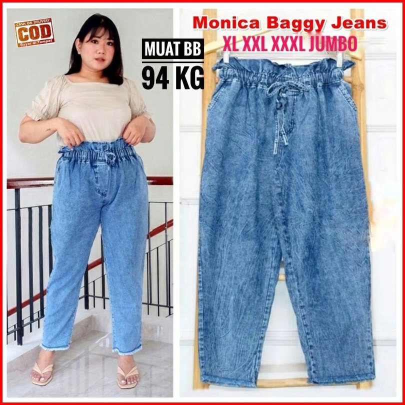 Celana Baggy Jeans Wanita Xl - Jumbo Celana Baggy Jumbo Boyfriend Jeans Wanita Pinggang Karet