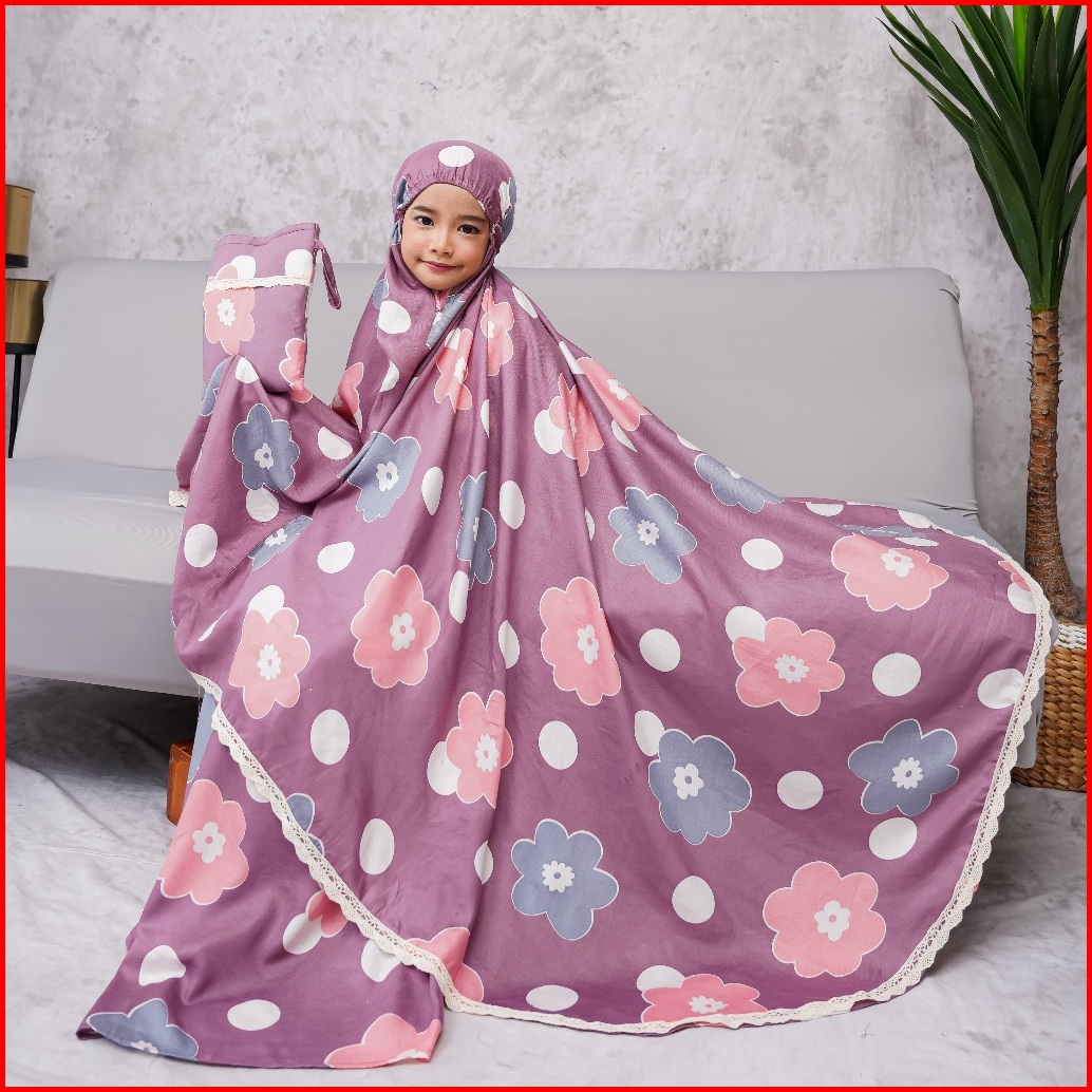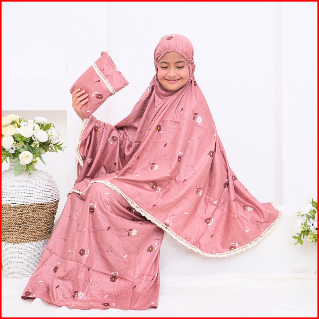 Mukena Anak Umur 6-9 Tahun Renda Rayon Bali Premium Azura Xl Arundaya