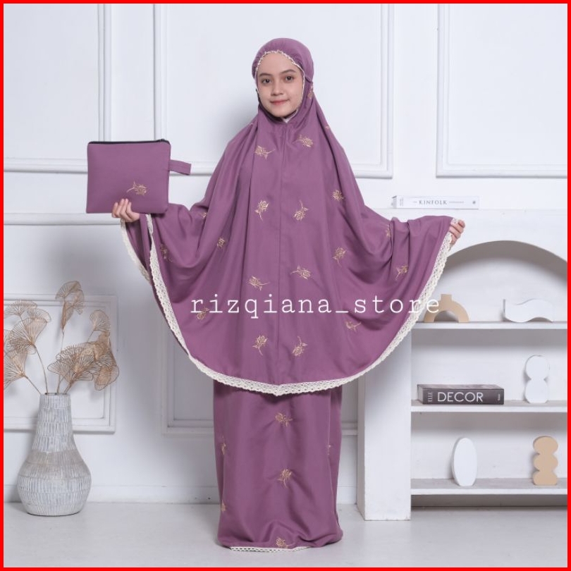 Rizqiana Store - Mukena Anak Perempuan Usia 7-10 Tahun Bordir Tulip Free Tas