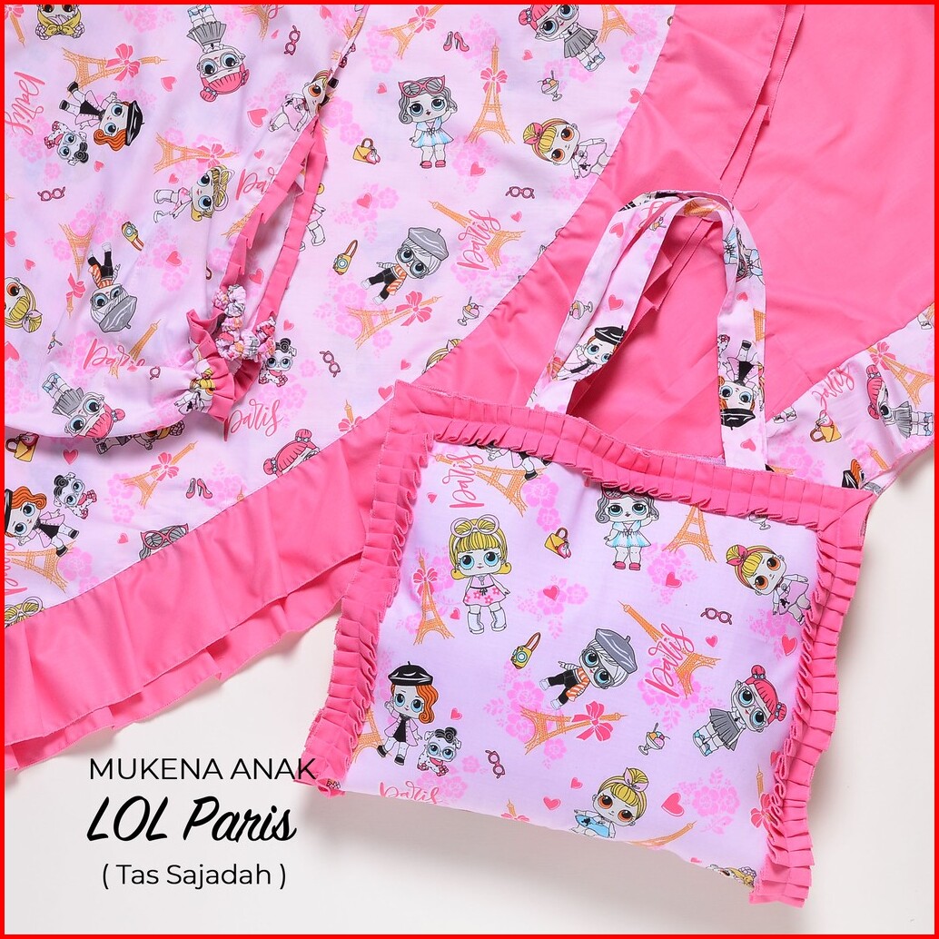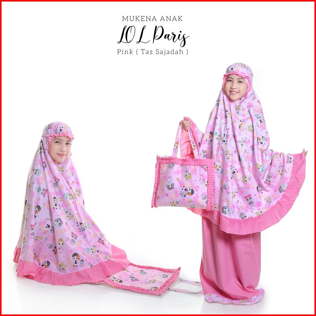 Pusat Grosir Mukena Tasik - Mukena Anak Katun Lol Paris Tas Sajadah Pink