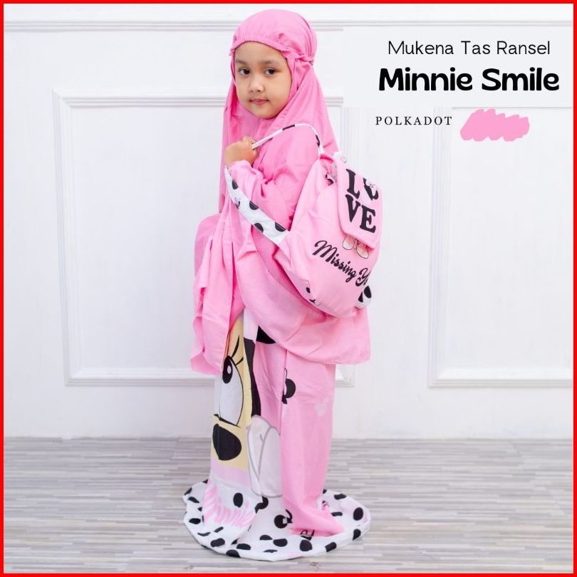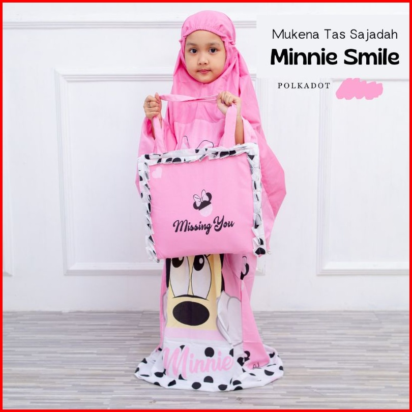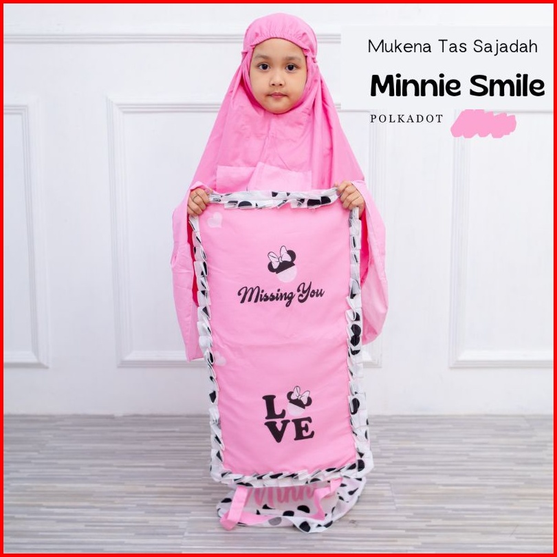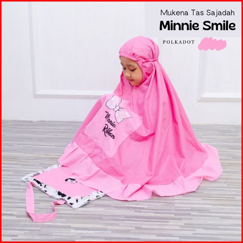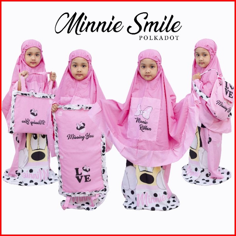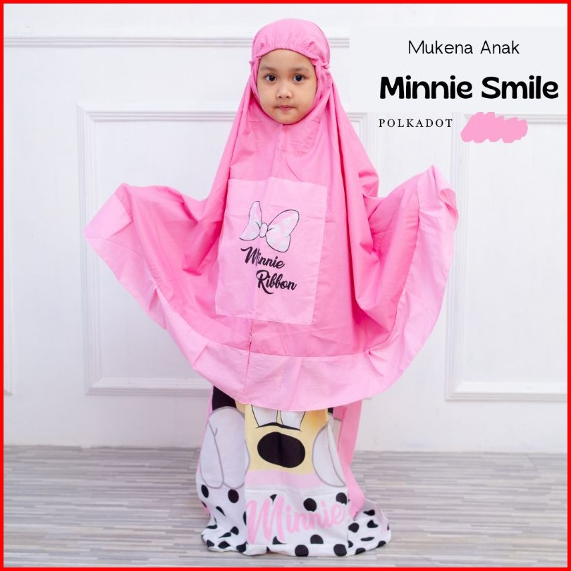 Mukena Anak Minnie Smile Polkadot Katun S-xl