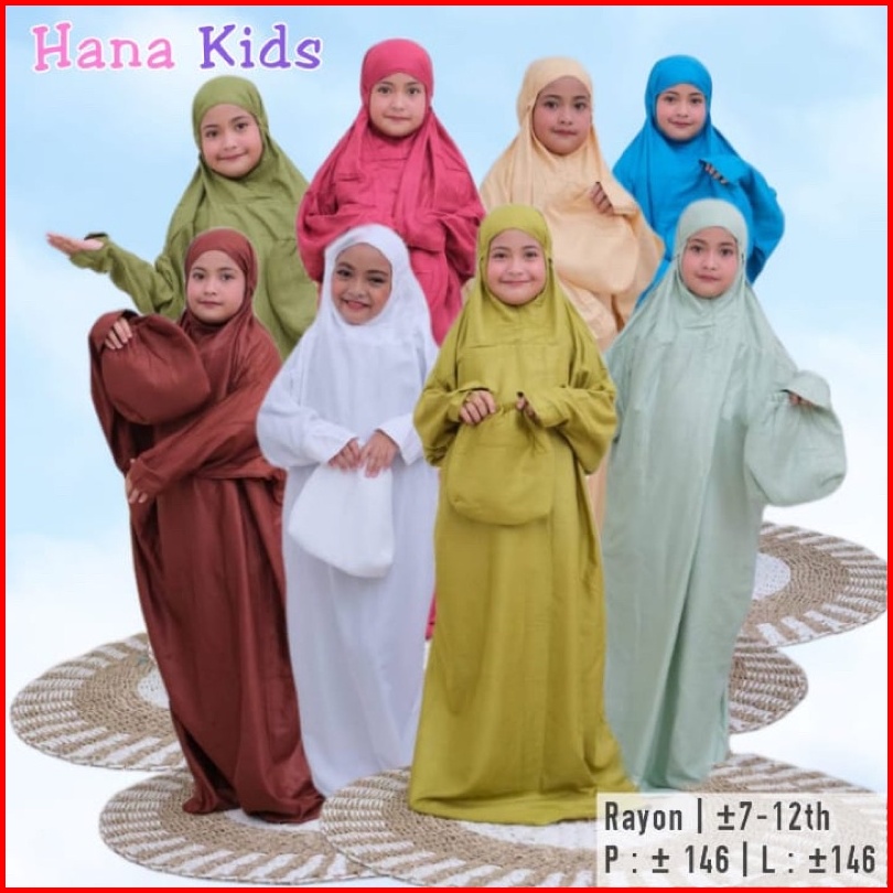 Mukena Bali Anak Terusan Polos Usia 6-11 Tahun - Hana Kids