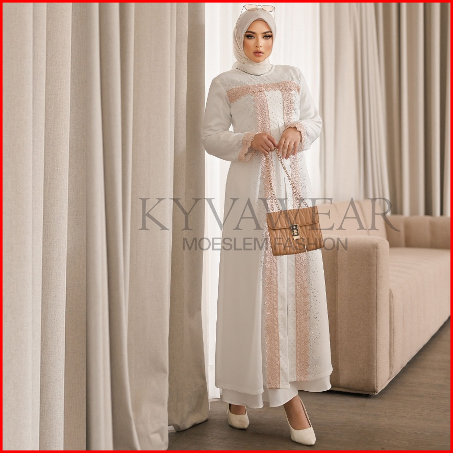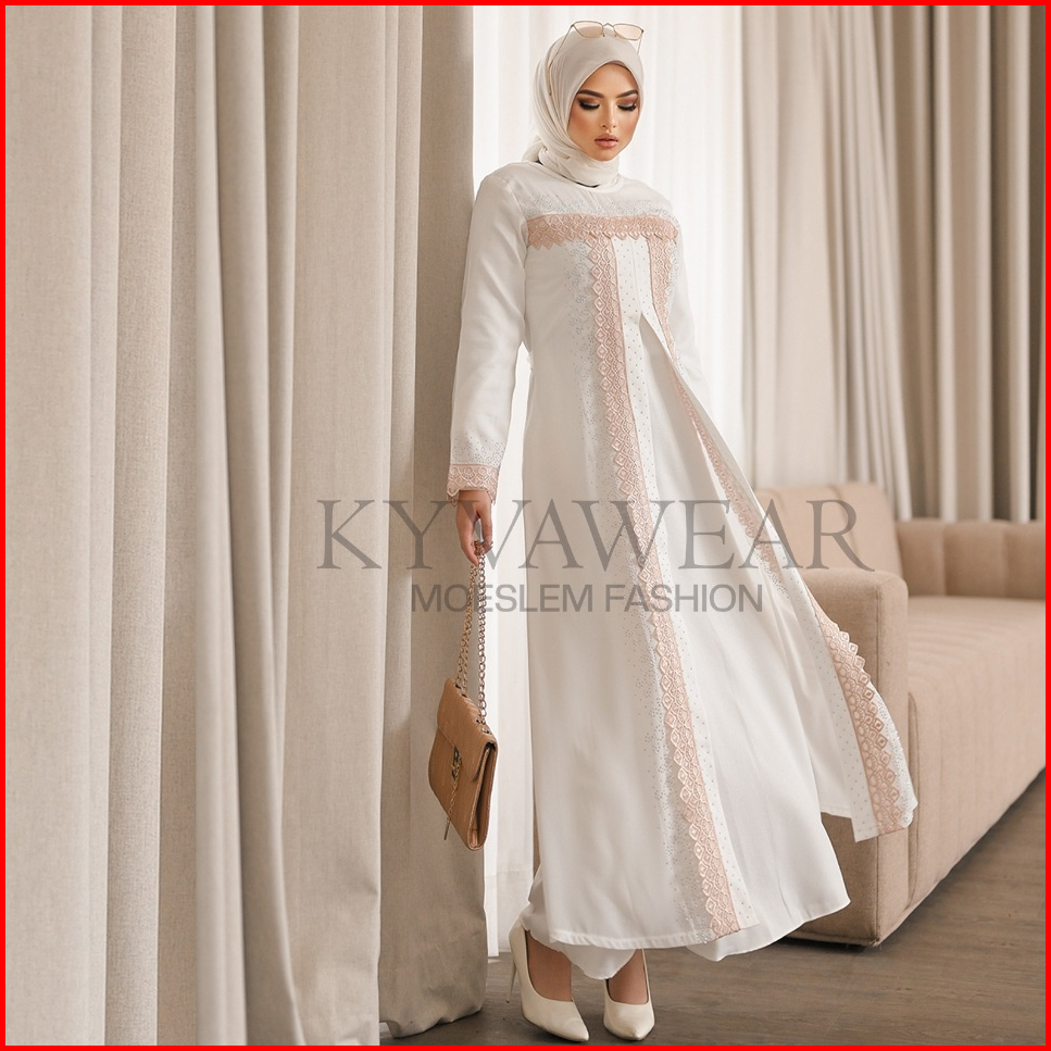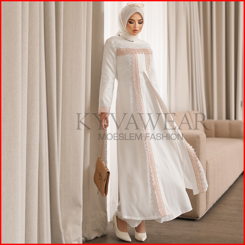 Kyva Gamis Muslim Abaya Putih Turkey Terbaru Renda Brokat Lm 012 Pesta Remaja Mewah