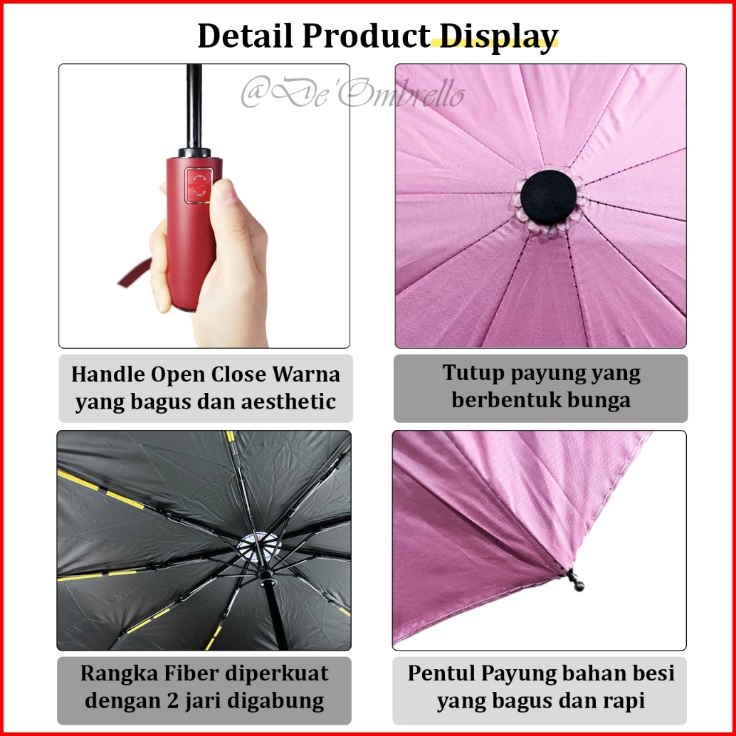 530 Payung Lipat 3 Otomatis 10 Jari Jumbo Anti Uv Polos Payung Otomatis