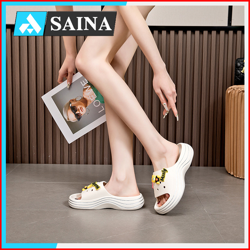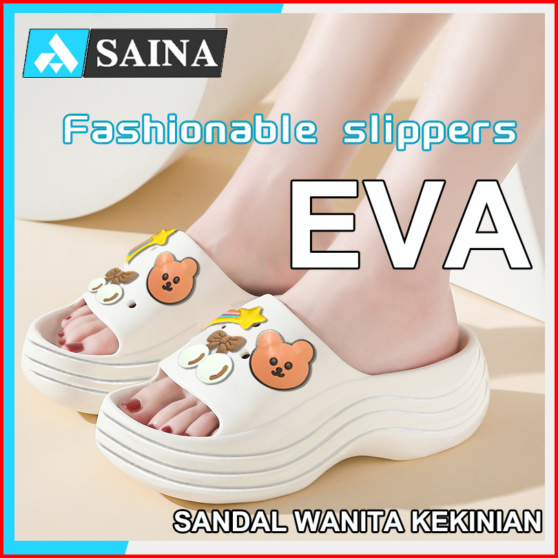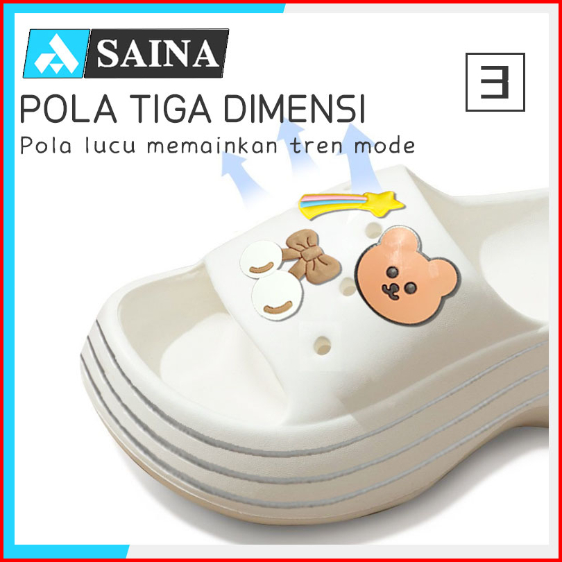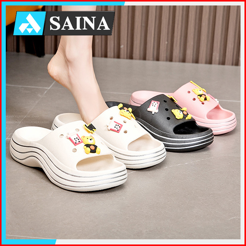 Sandal Wanita Wedges Import 2025 Sandal Fuji Jelly Jibbitz Baim Selop Rumah Karet Empuk Platform Tebal Anti Slip Eva