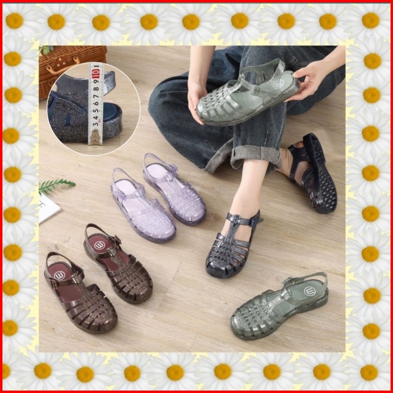 Shoes By Tira Meisha Colour Glitter Sandal Wanita Import Jelly Shoes Wanita Sandal Jelly Viral Glitter