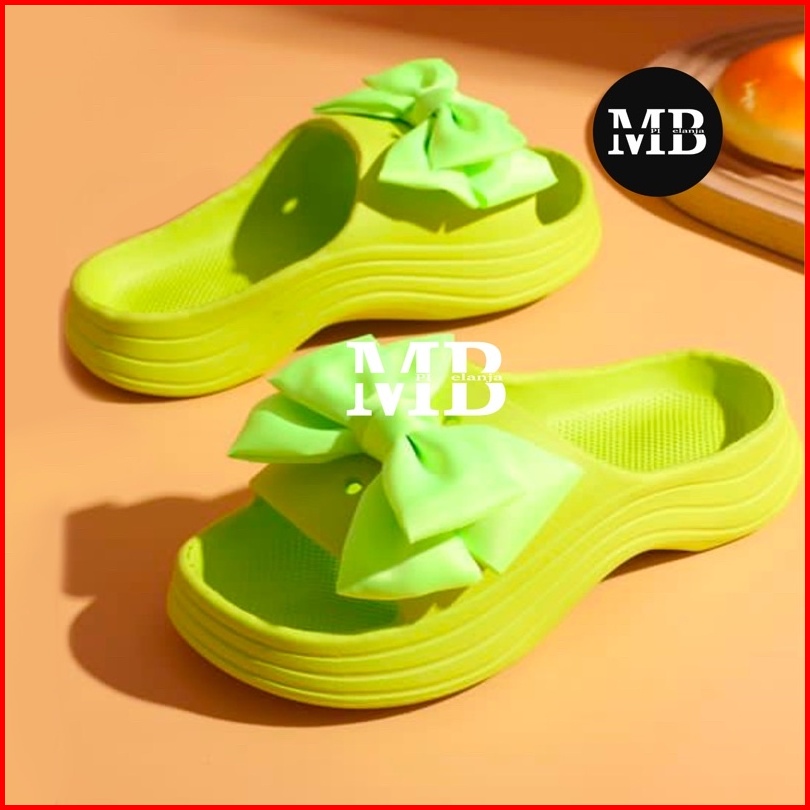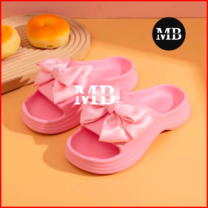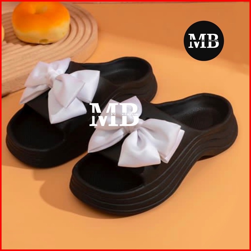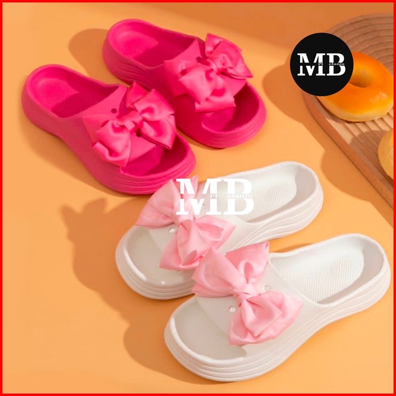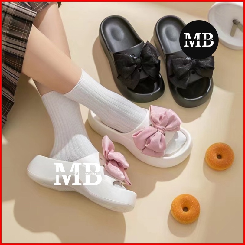 Eva Sandal Jelly Wedges Slop Wanita Slip On Tebal Bangkok Motif Pita Satin Double 815