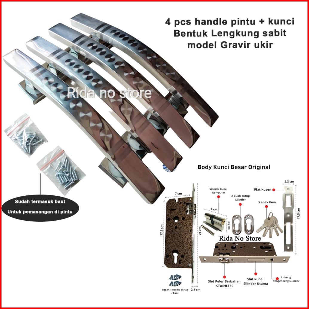 1 Set Kunci Pintu Rumah 2 Pintu 4 Handle Pintu Rumah 45 Cm Gagang Pintu Rumah