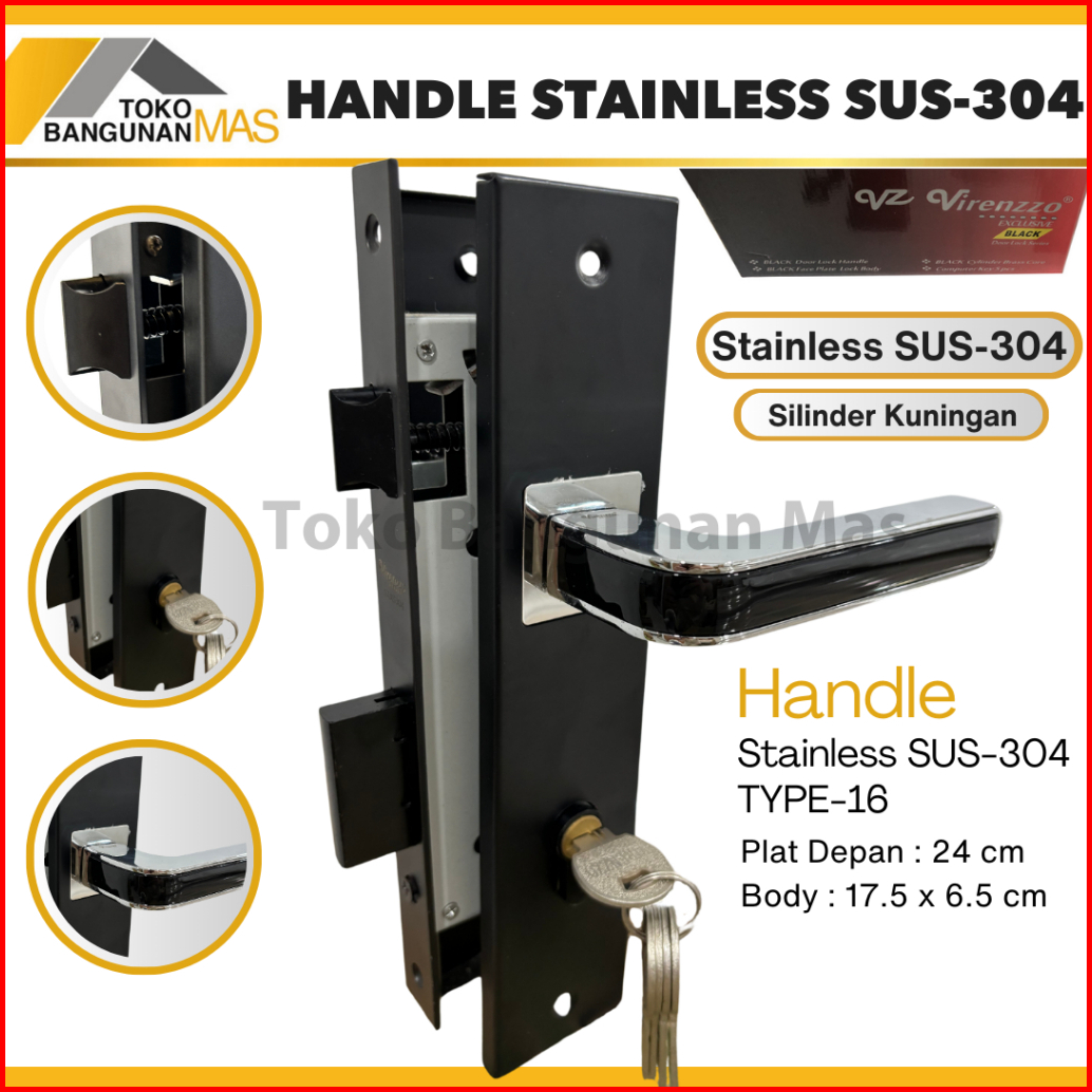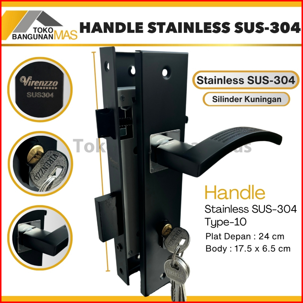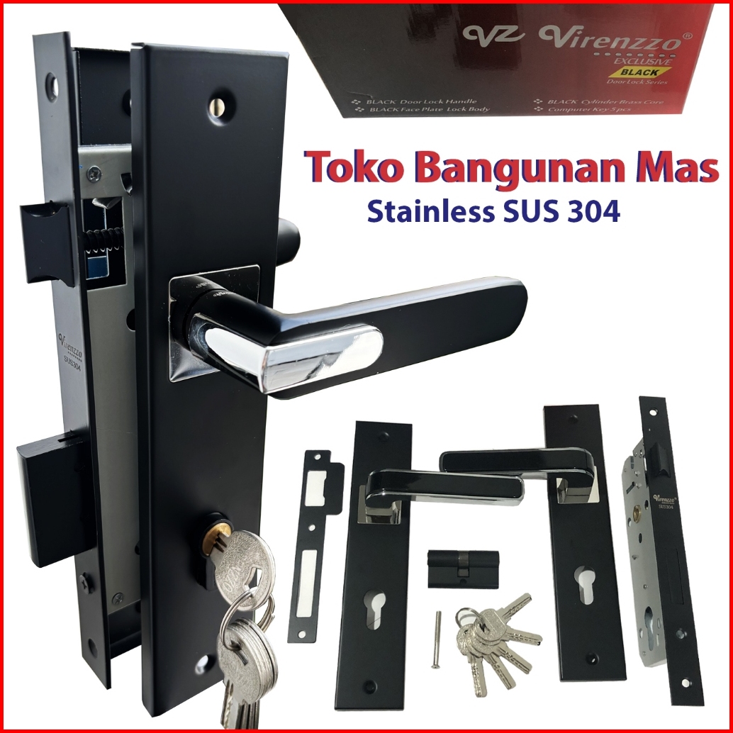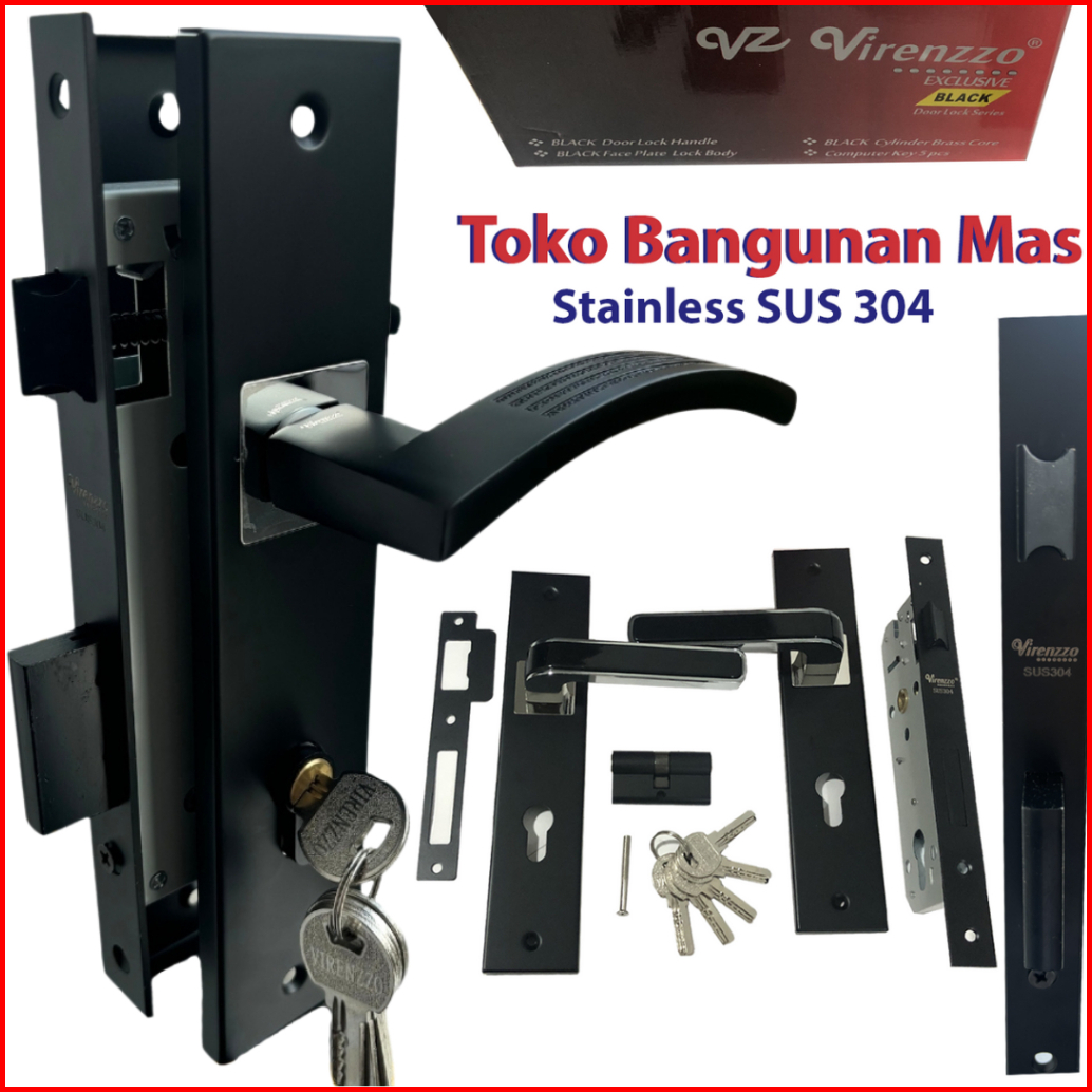Handle Pintu Rumah Stainless Black Doff Virenzzo Sus-304 Kunci Pintu Rumah Stainless Sus-304