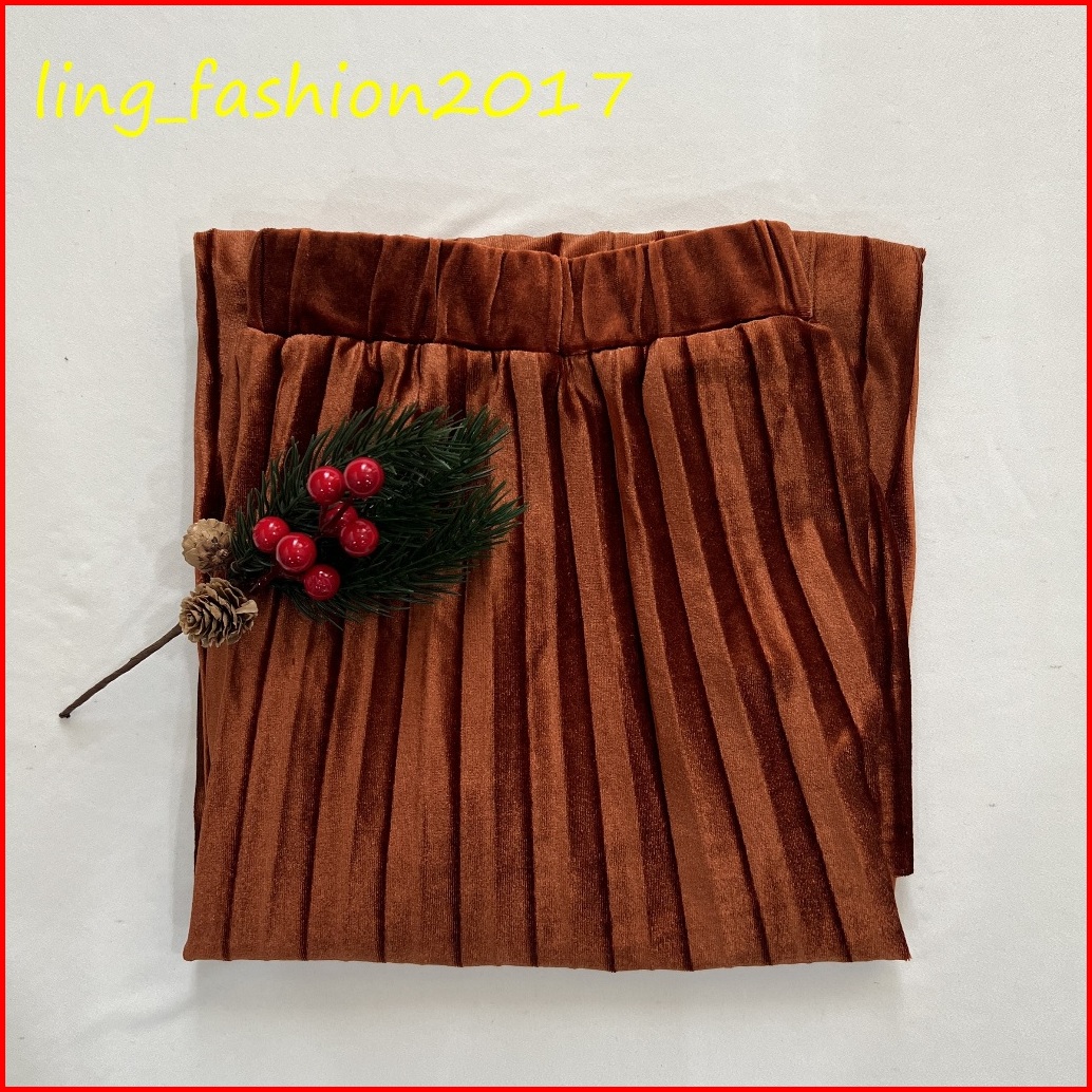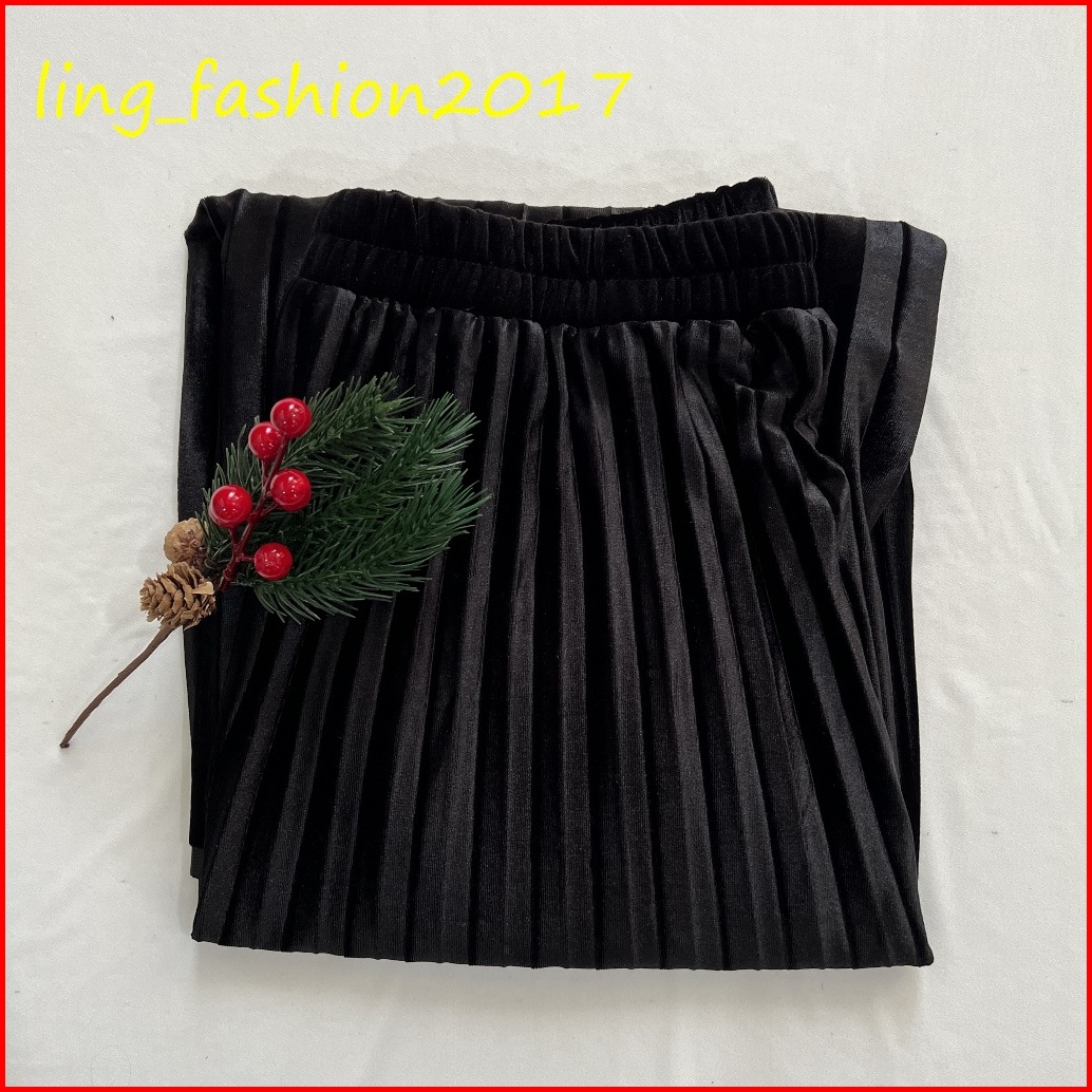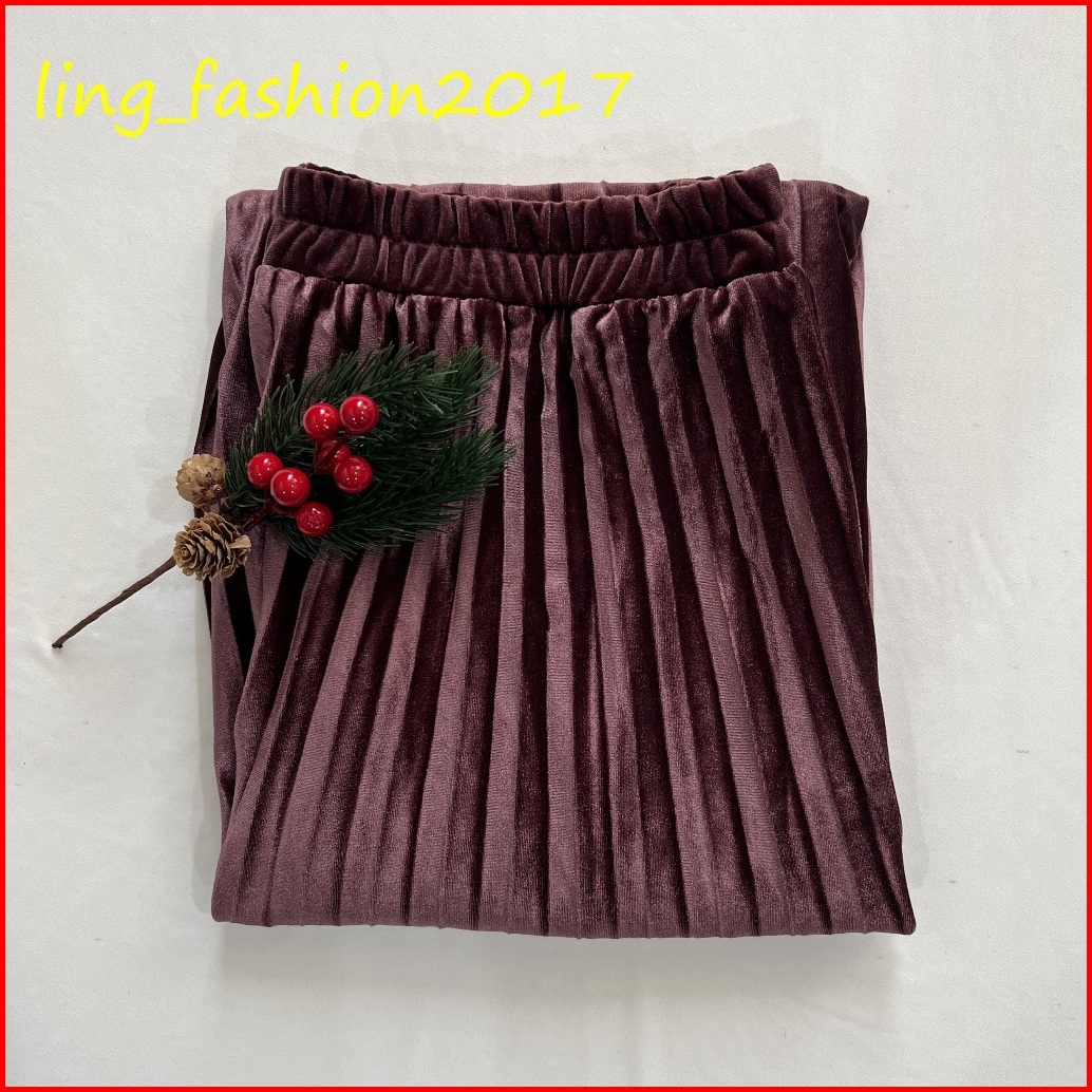 Rok Plisket Bludru Mewah Spring Autumn Woven Hight Waist Plester Long Skirt Rok Plisket Velvet Rok Payung Rok Beludru