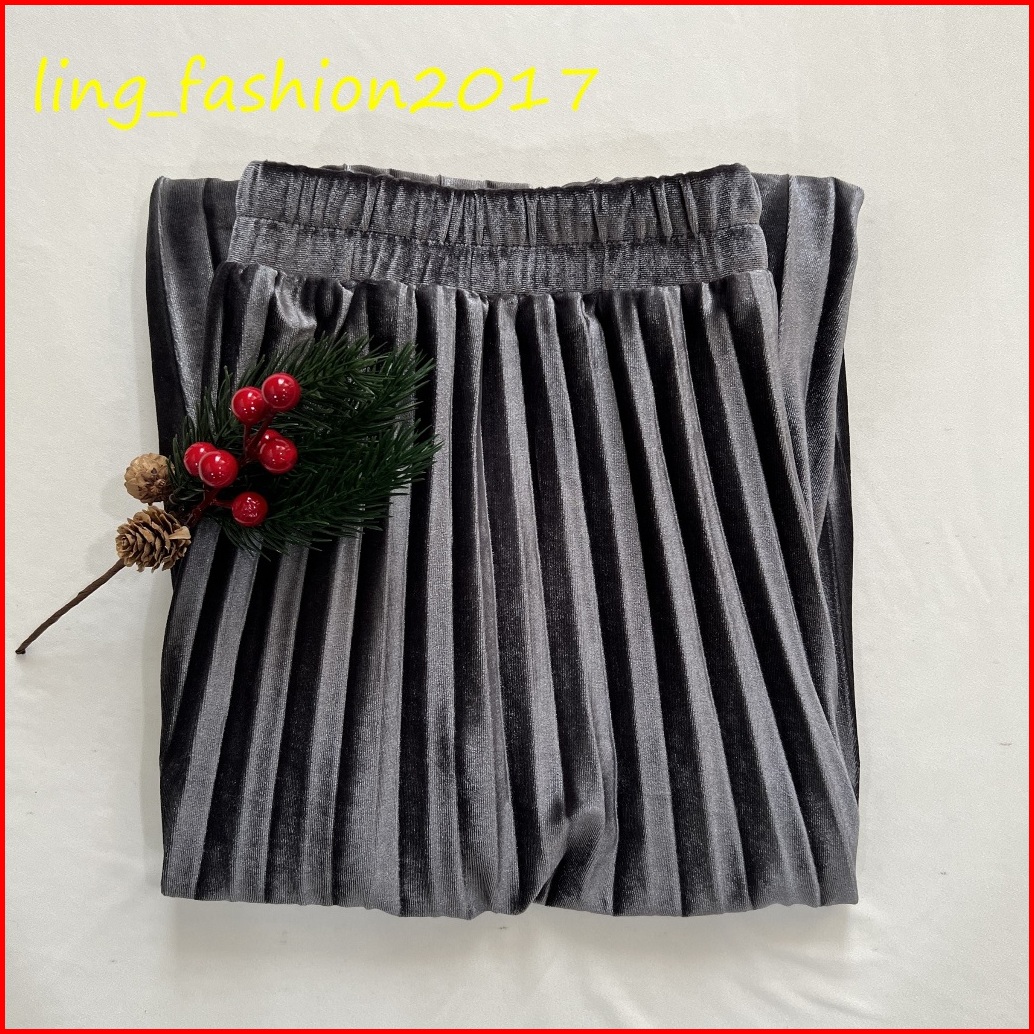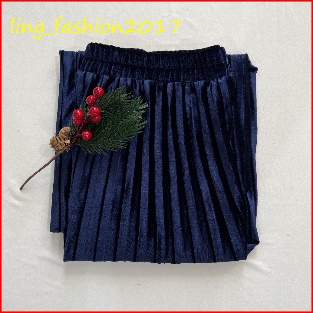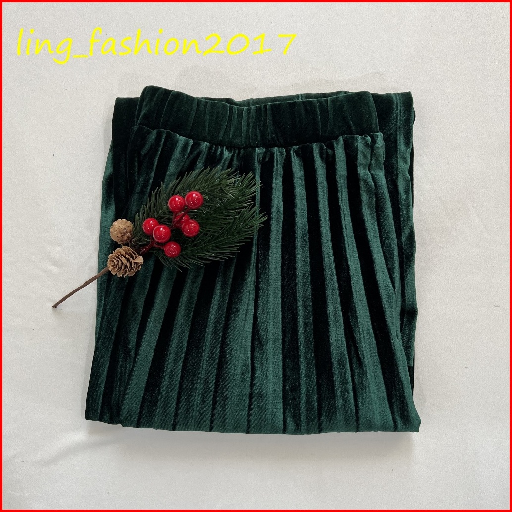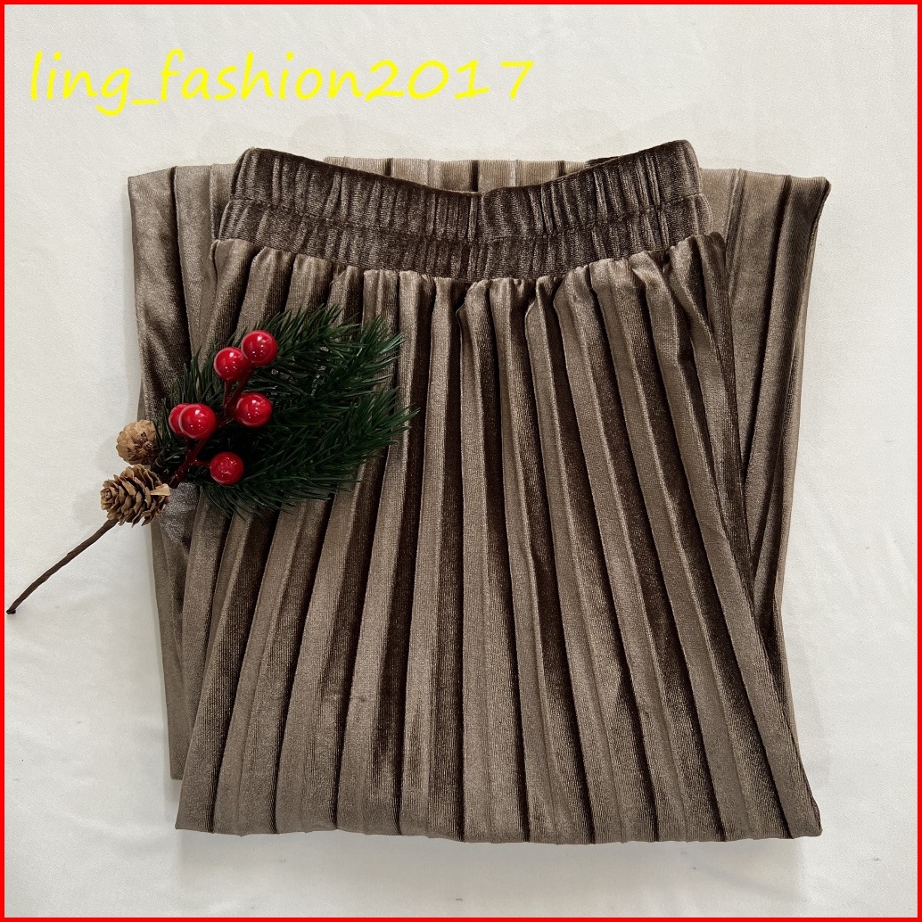 Rok Plisket Bludru Mewah Spring Autumn Woven Hight Waist Plester Long Skirt Rok Plisket Velvet Rok Payung Rok Beludru