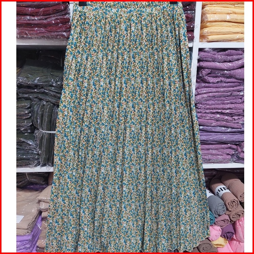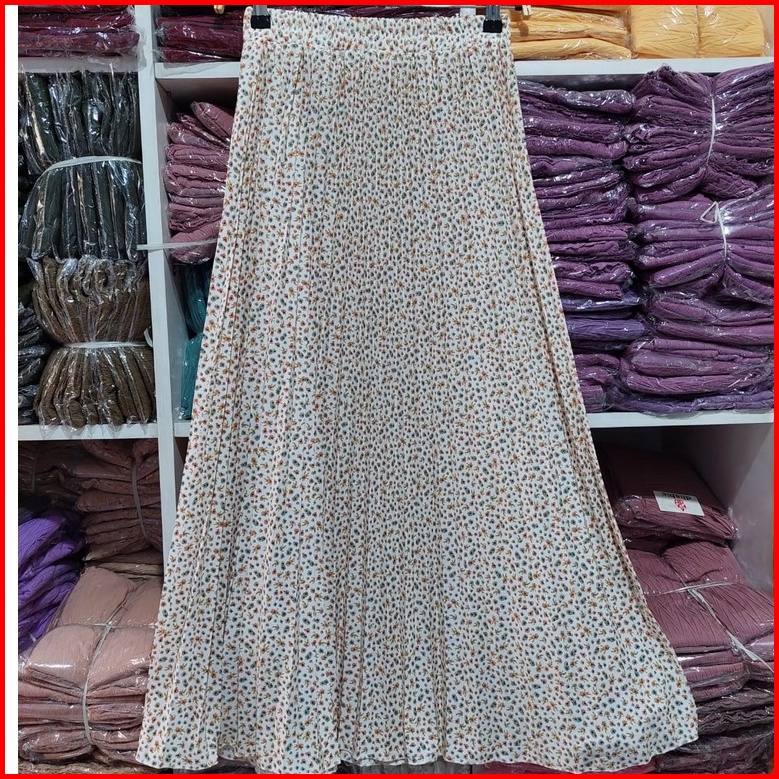 D-01 Rok Plisket Payung Printing Motif Bunga Rok Muslim Bunga Kecil