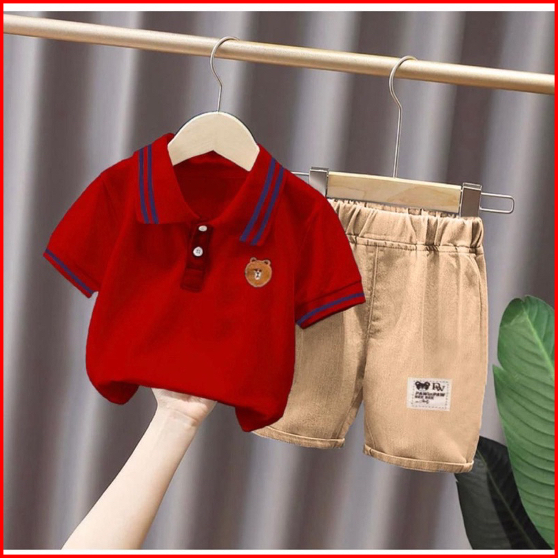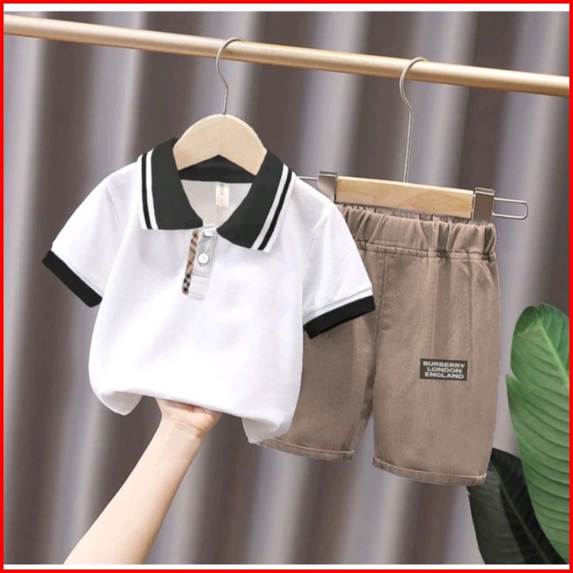 Setelan Baju Polo Kerah Hitam Anak Size 6 Bulan-5 Tahun Bahan Lembut Aman Dan Nyaman Dipakai Setelan Baju Polo Kerah Hit