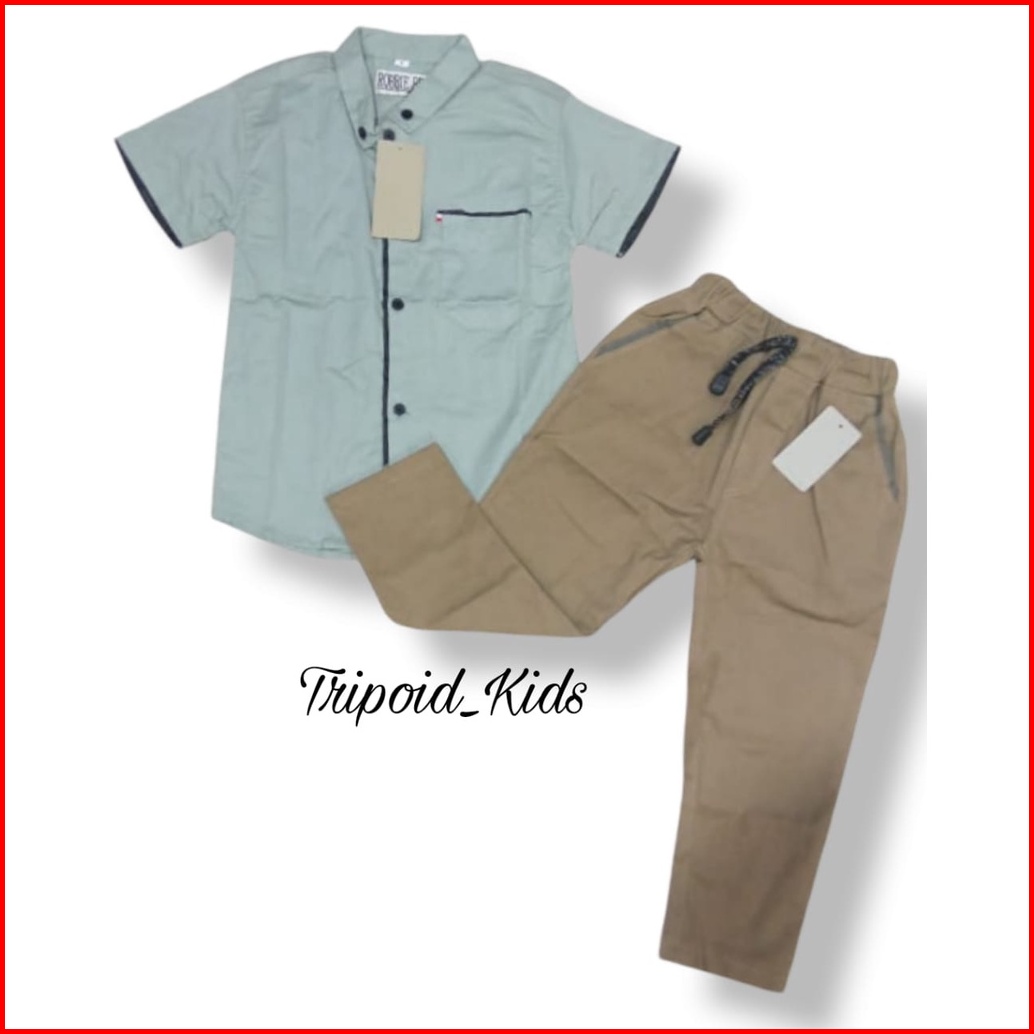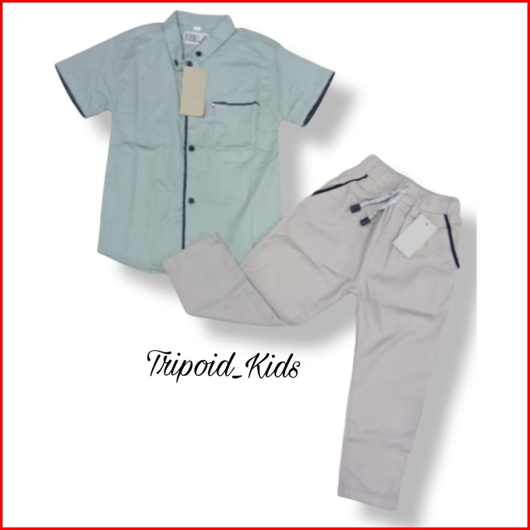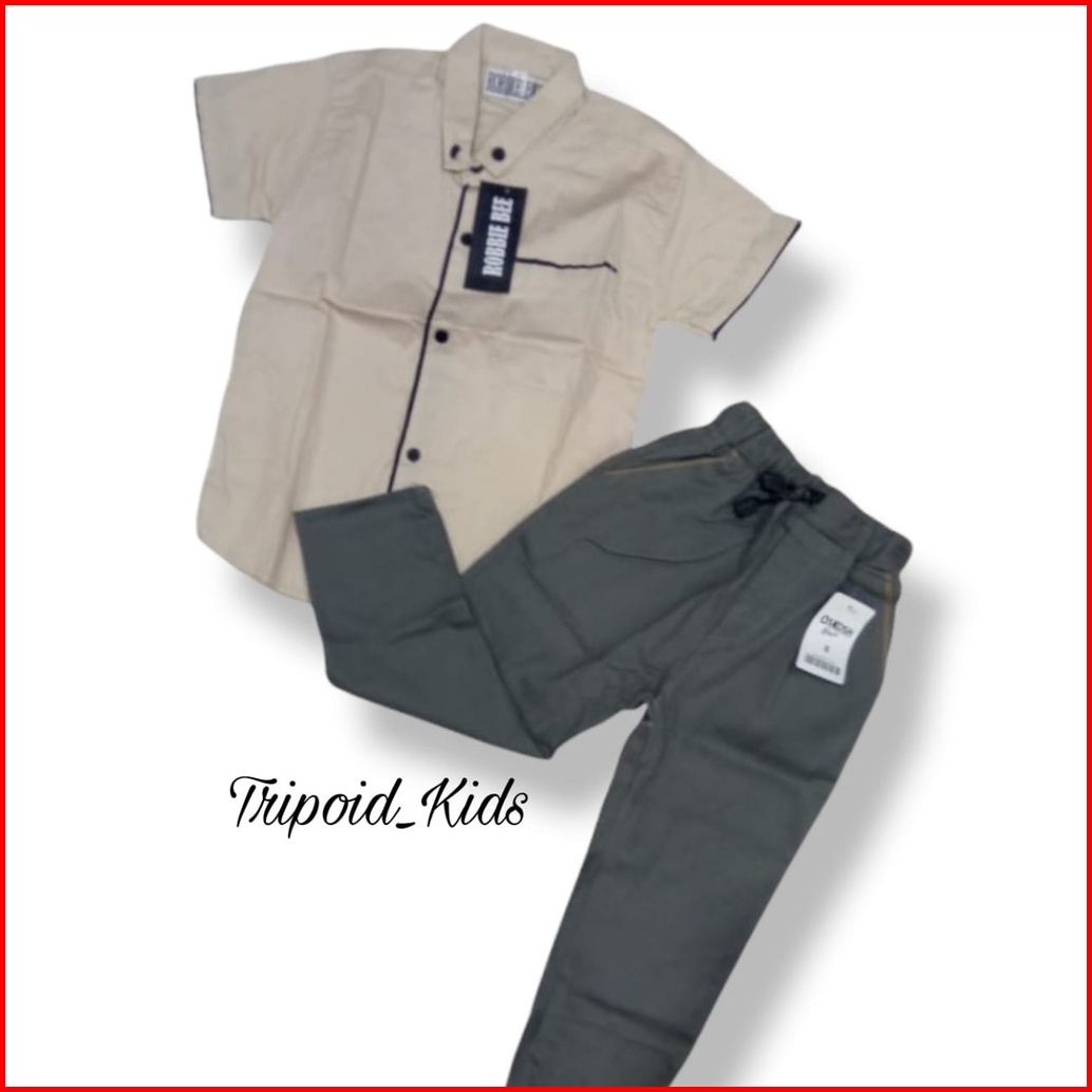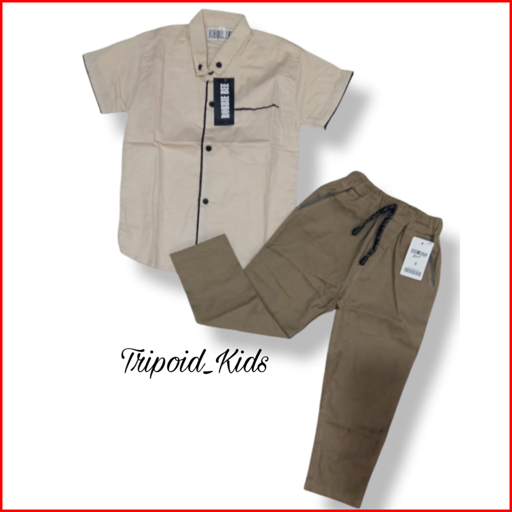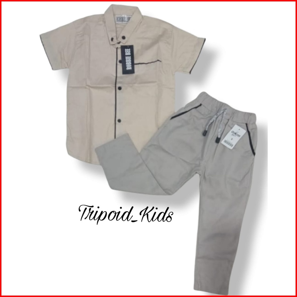 Setelan Kemeja Katun Streach Polos Setelan Anak Laki Laki Usia 7 Sampai 12 Tahun