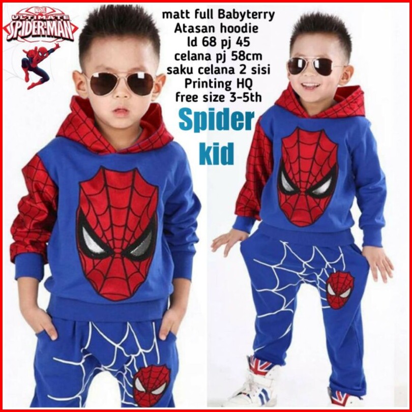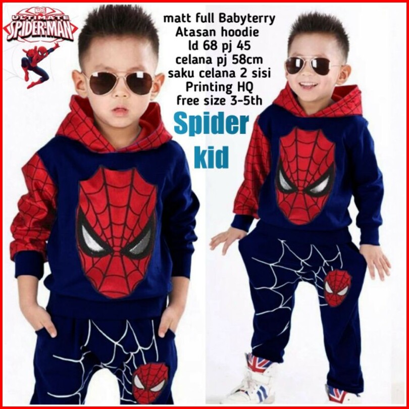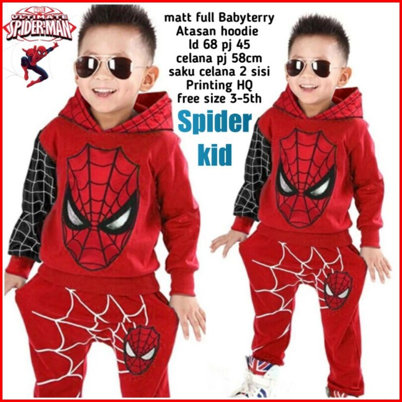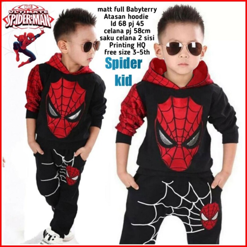 Setelan Spider Kid Sweater Anak 3-8 Tahun Setelan Cowok Cewek Kostum Karakter Spiderman Keren