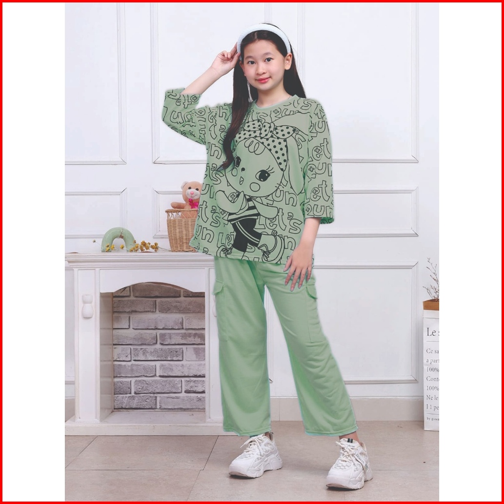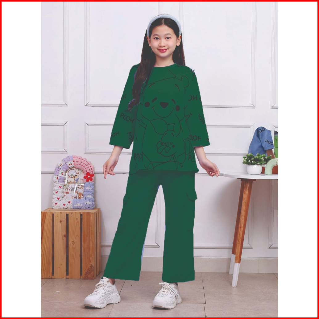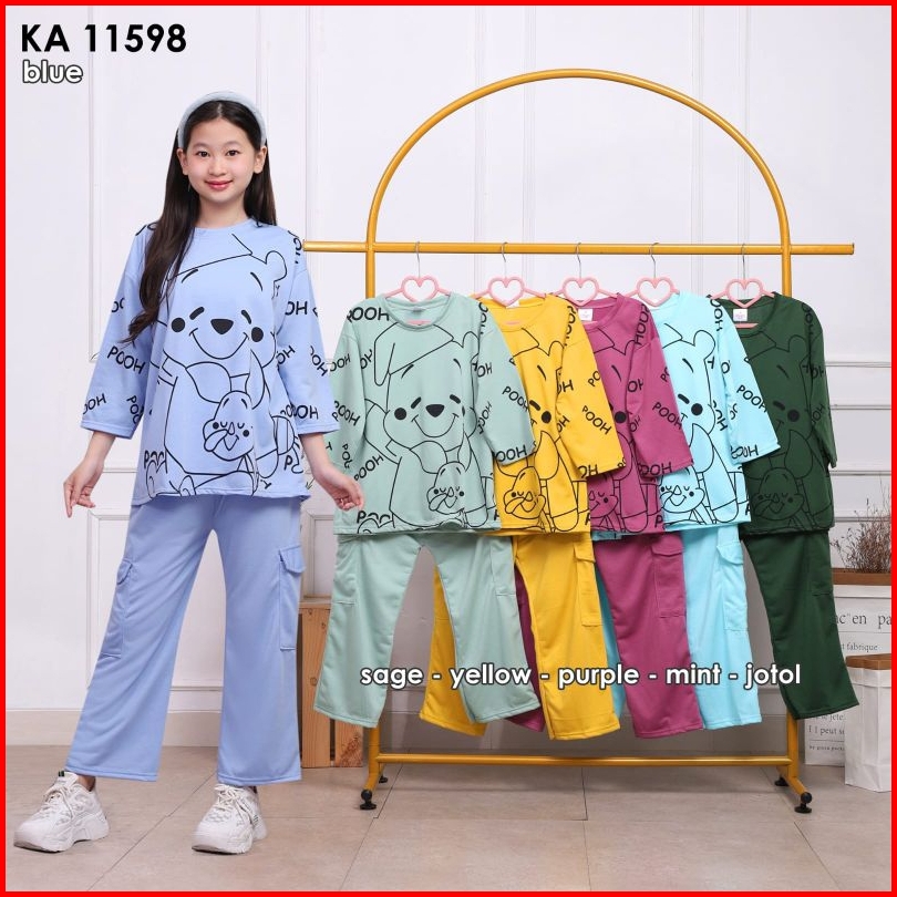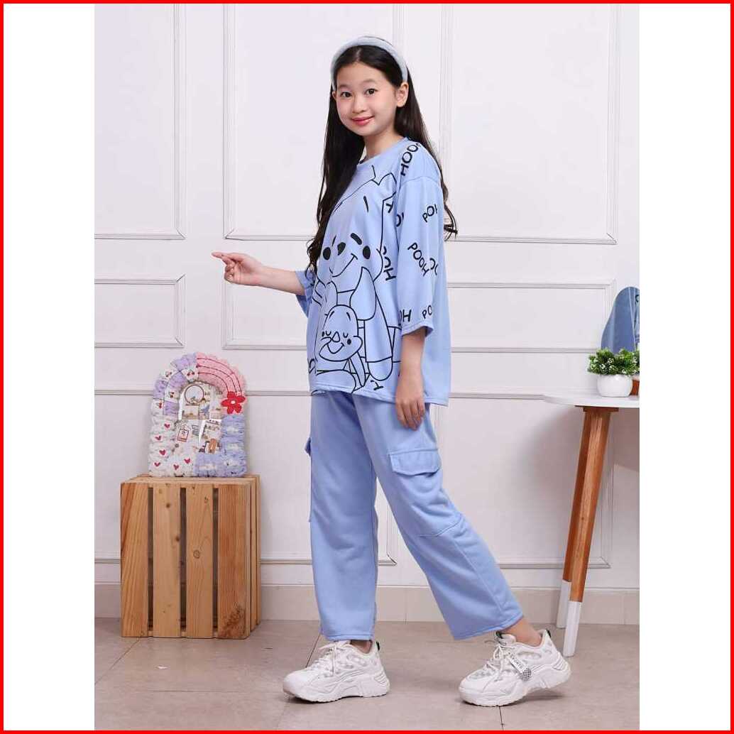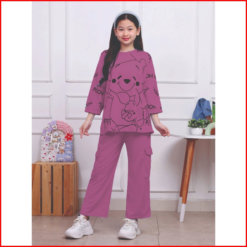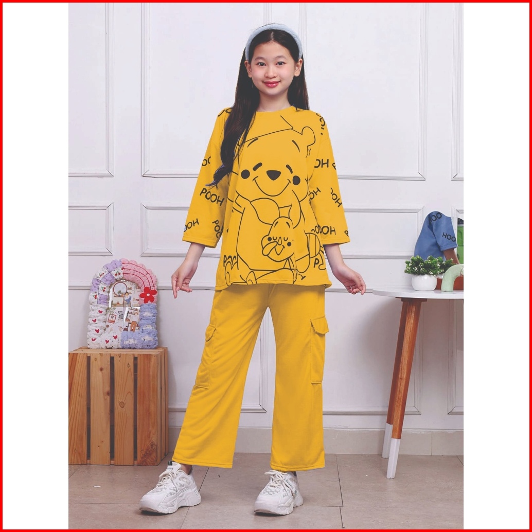 Setelan Cargo Anak Motif Pooh Usia 4-12 Tahun Bahan Vista Terry