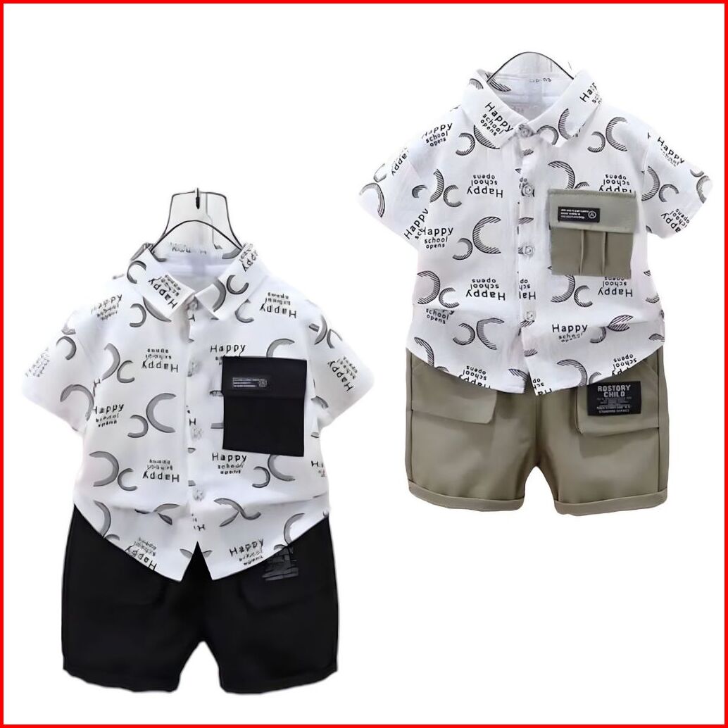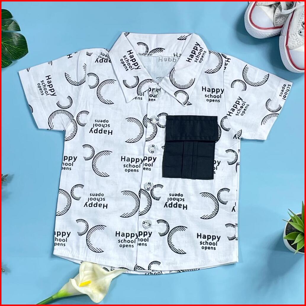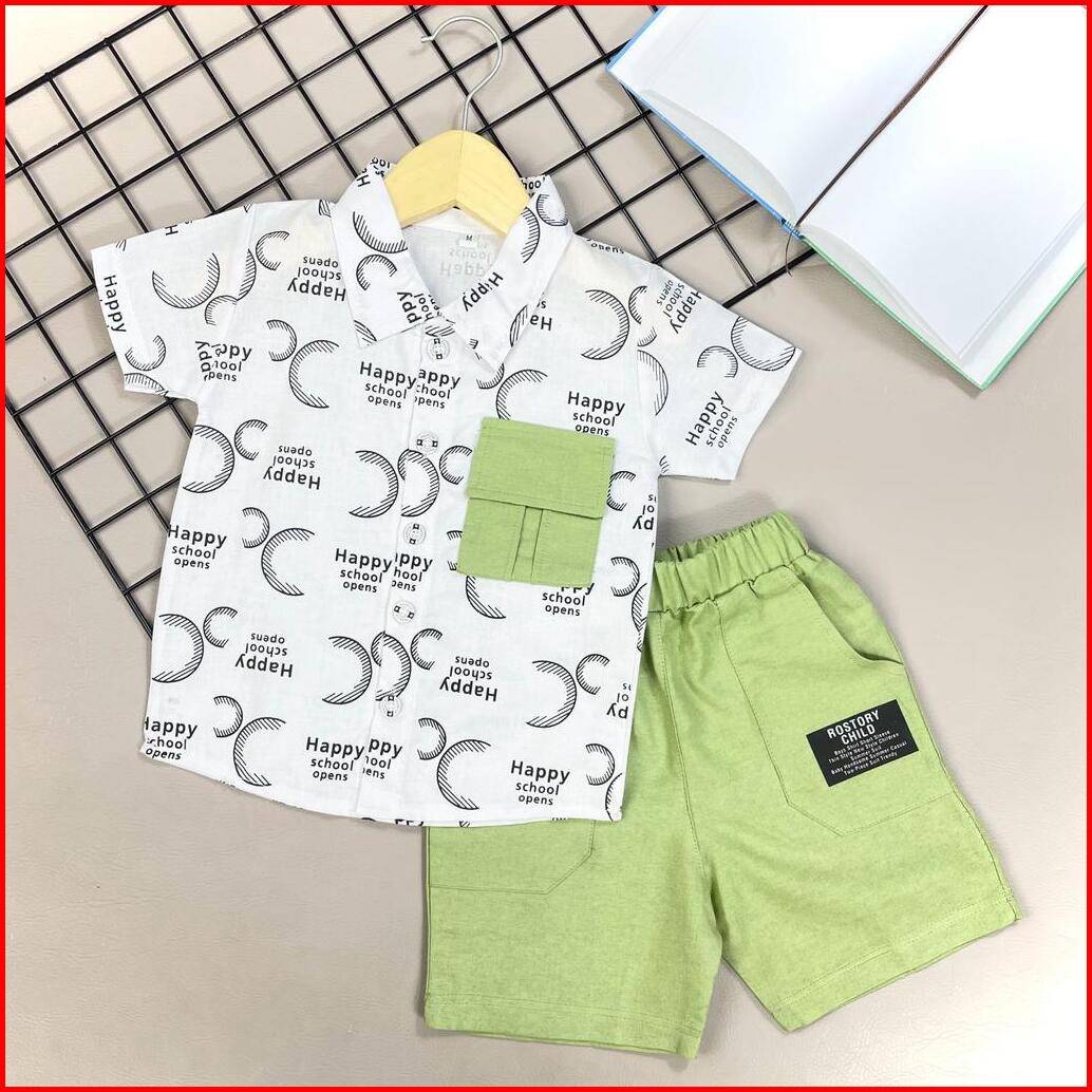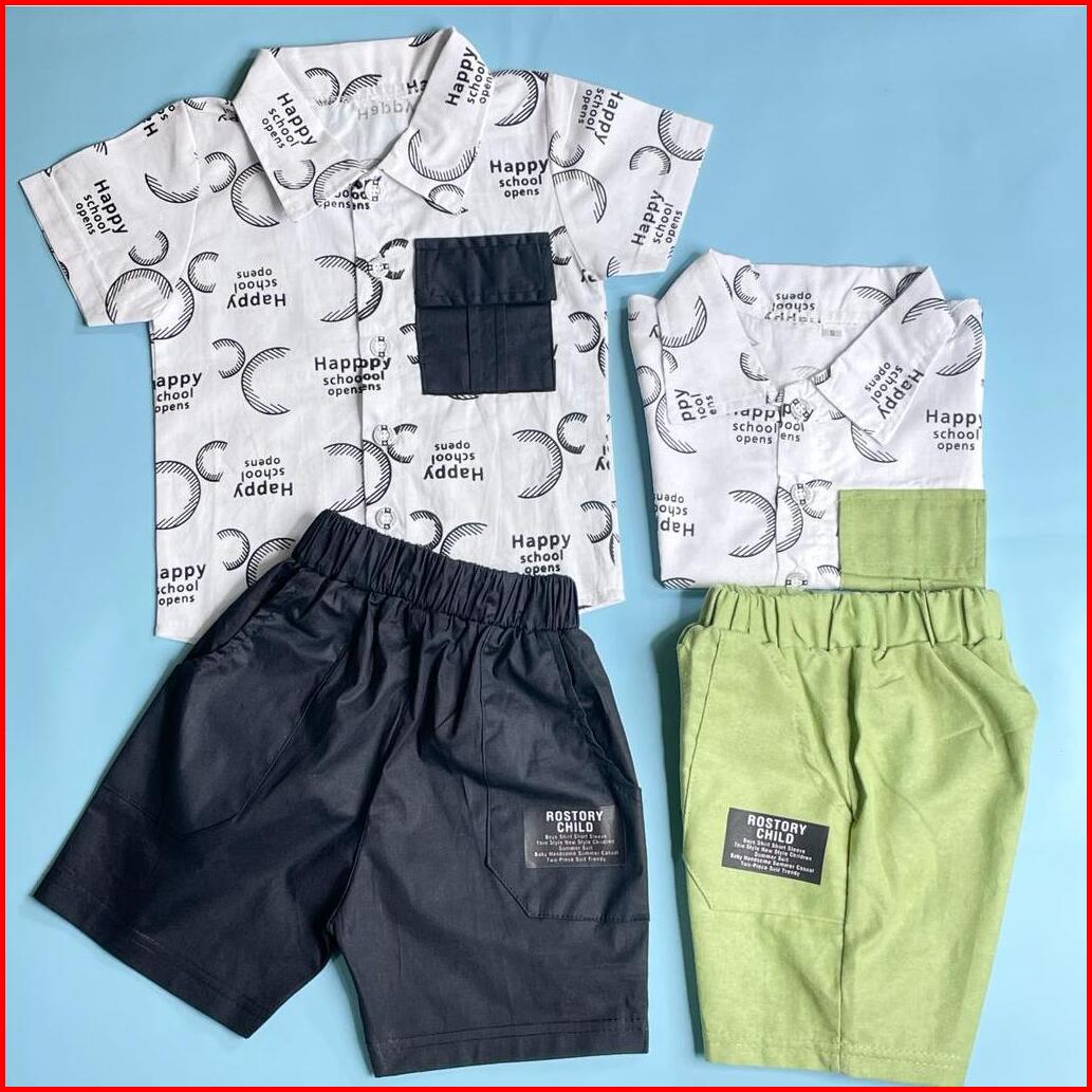 Sale 9.9 Setelan Kemeja Anak Cowok Happy School 1-4 Tahun Enzio Baju Berkuaitas