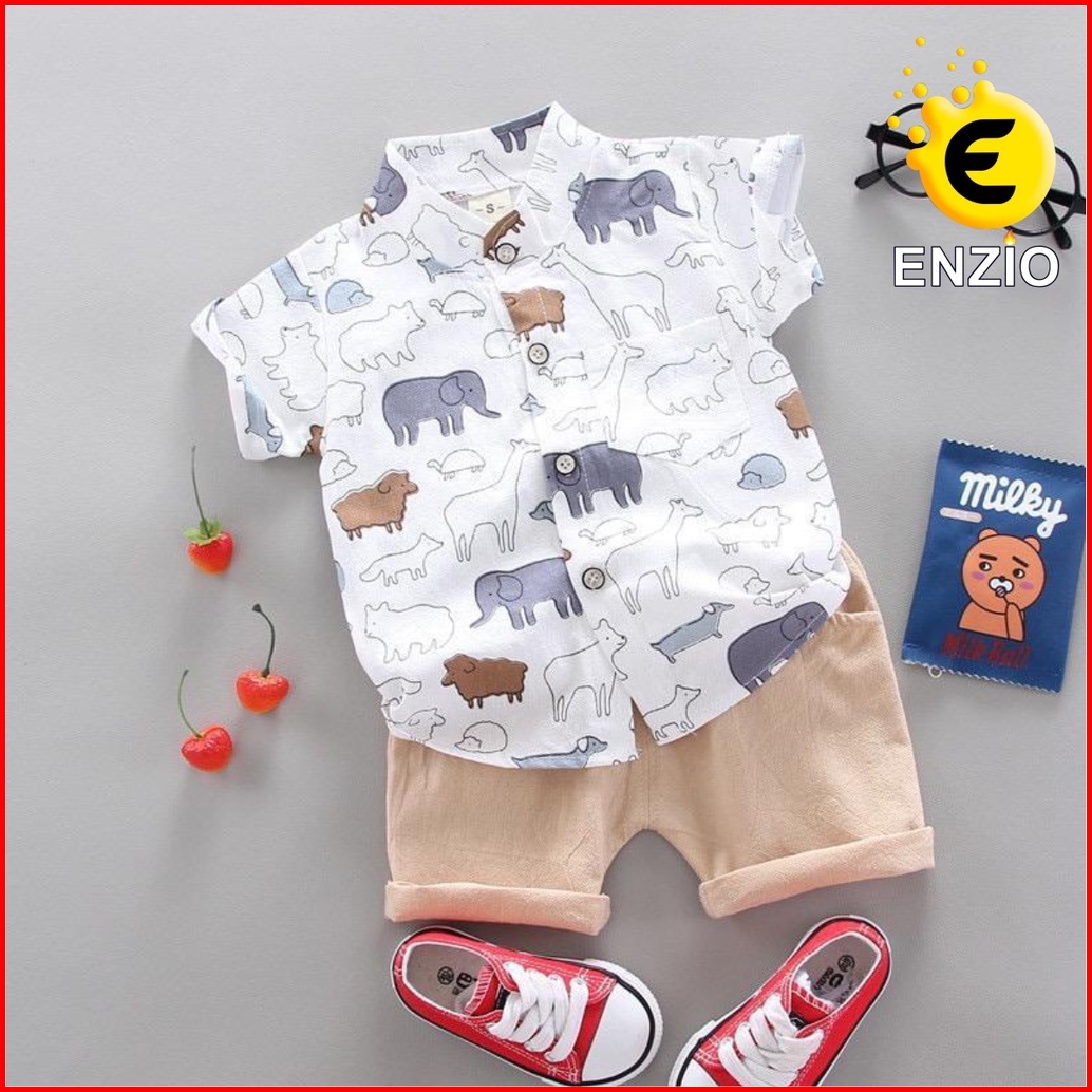Sale 9.9 Setelan Kemeja Anak Cowok 1-4 Tahun Enzio Baju Berkuaitas