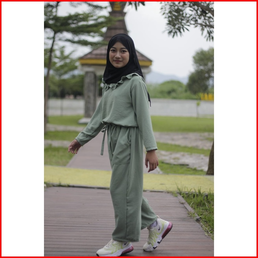 Setelan Anak Perempuan Muslim Lucu Import Korean Style 8 Sampe 12 Tahun Cringkle Airflow