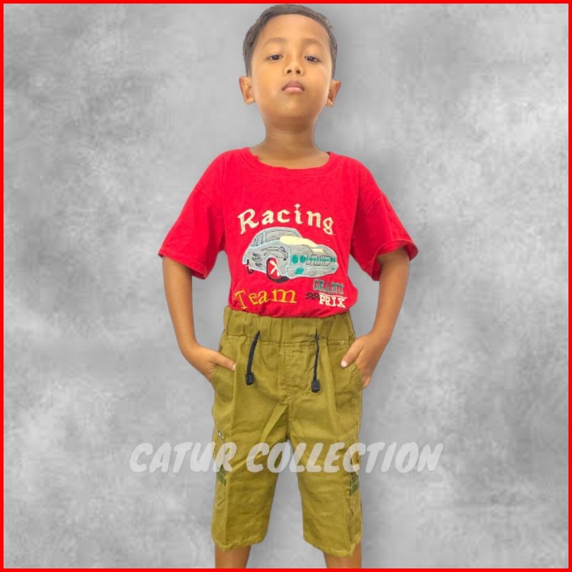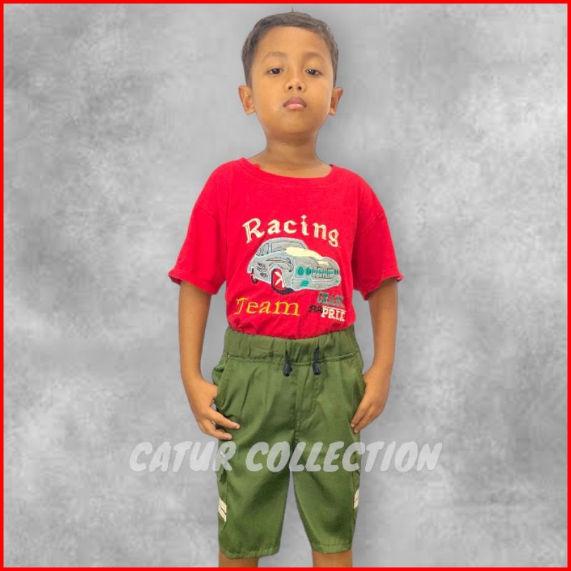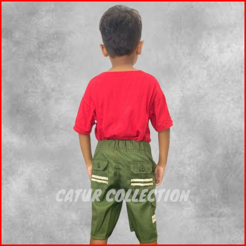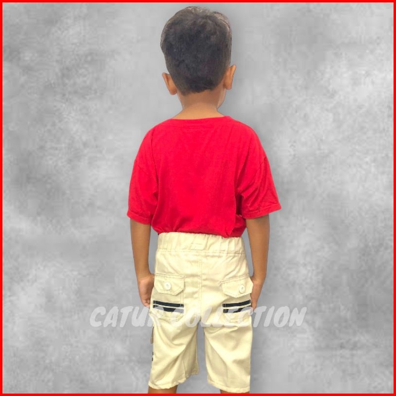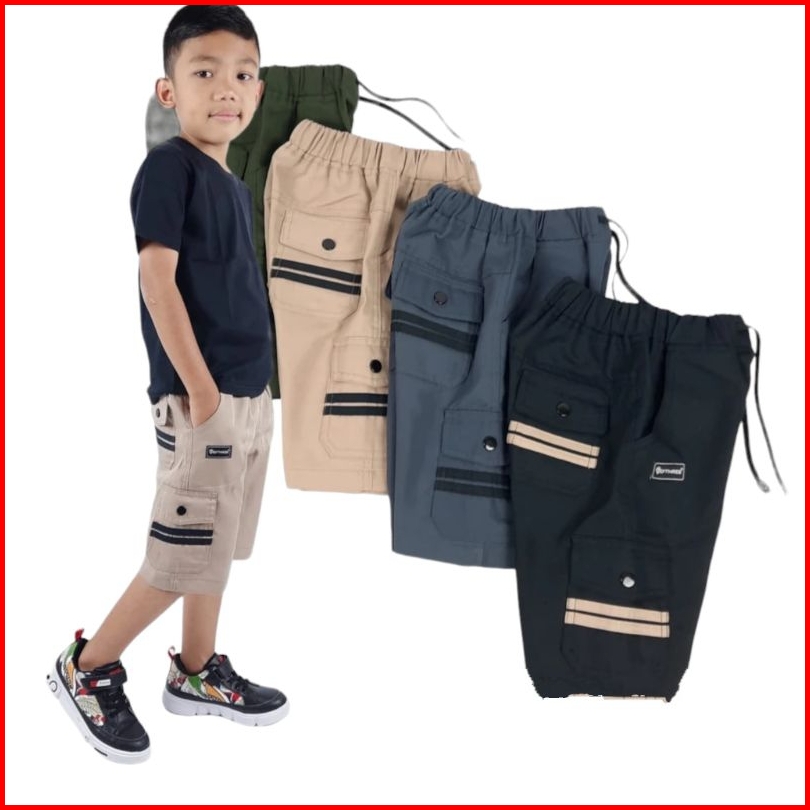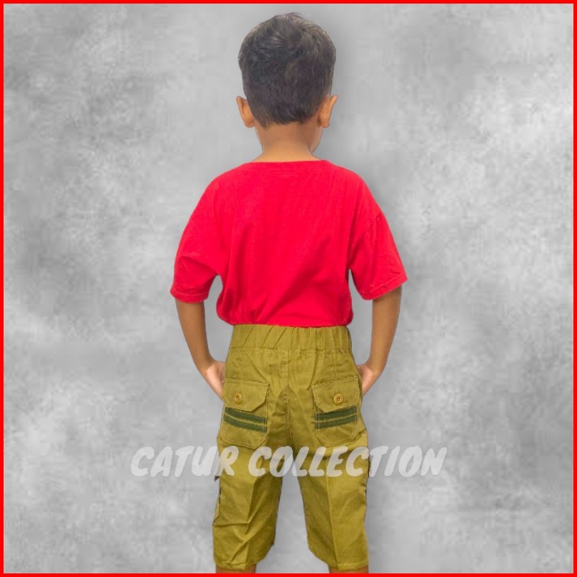 Celana Cargo Pendek Anak Laki Laki Usia 1-12 Tahun Pinggang Karet Kolor Katun American Dril