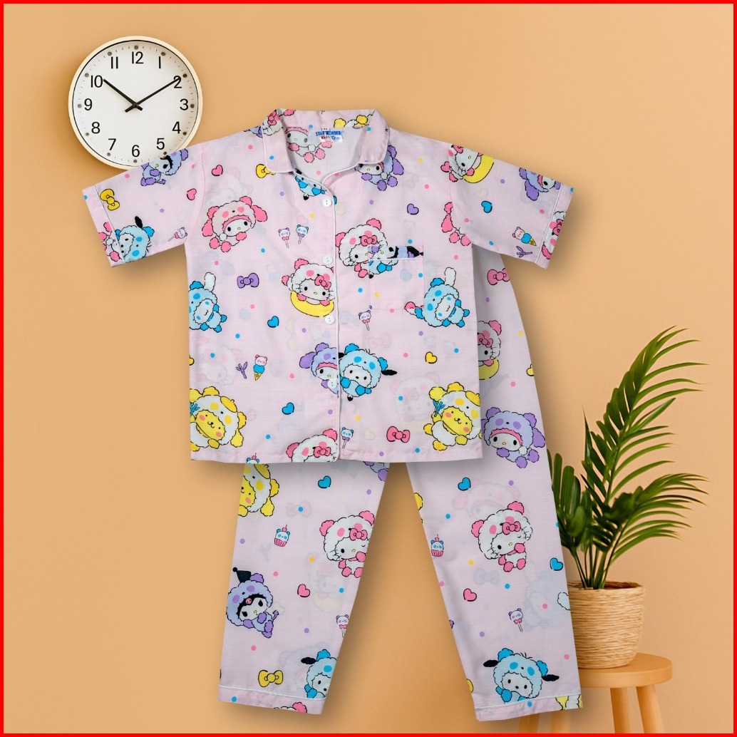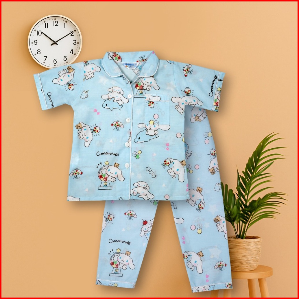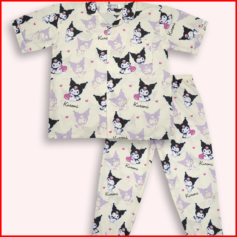 Piyama Kerah Katun Anak Lucu Karakter Kuromi Cinroll Baju Tidur Anak Perempuan Katun Lokal