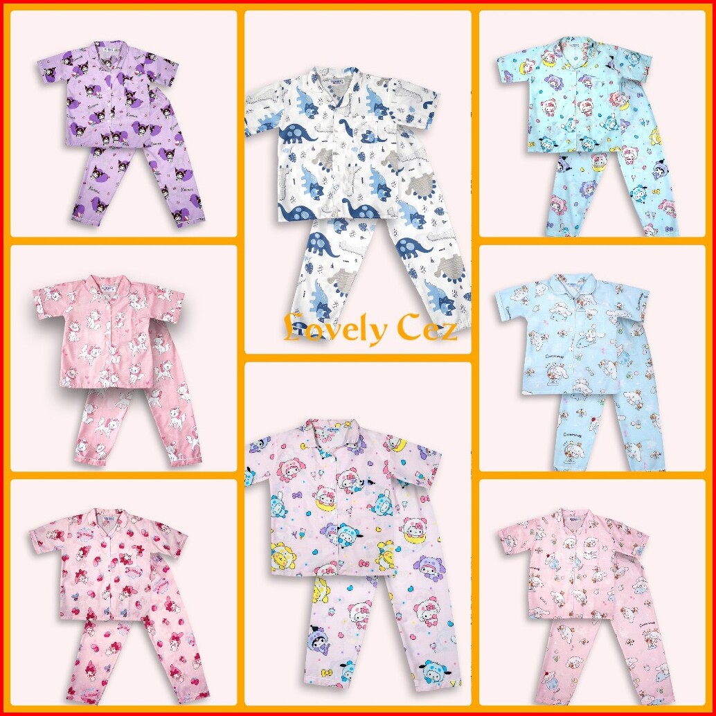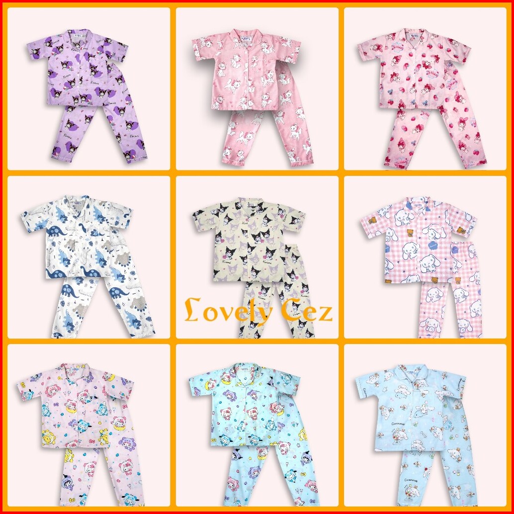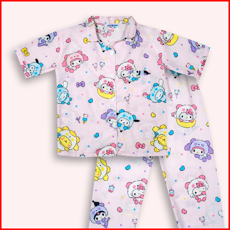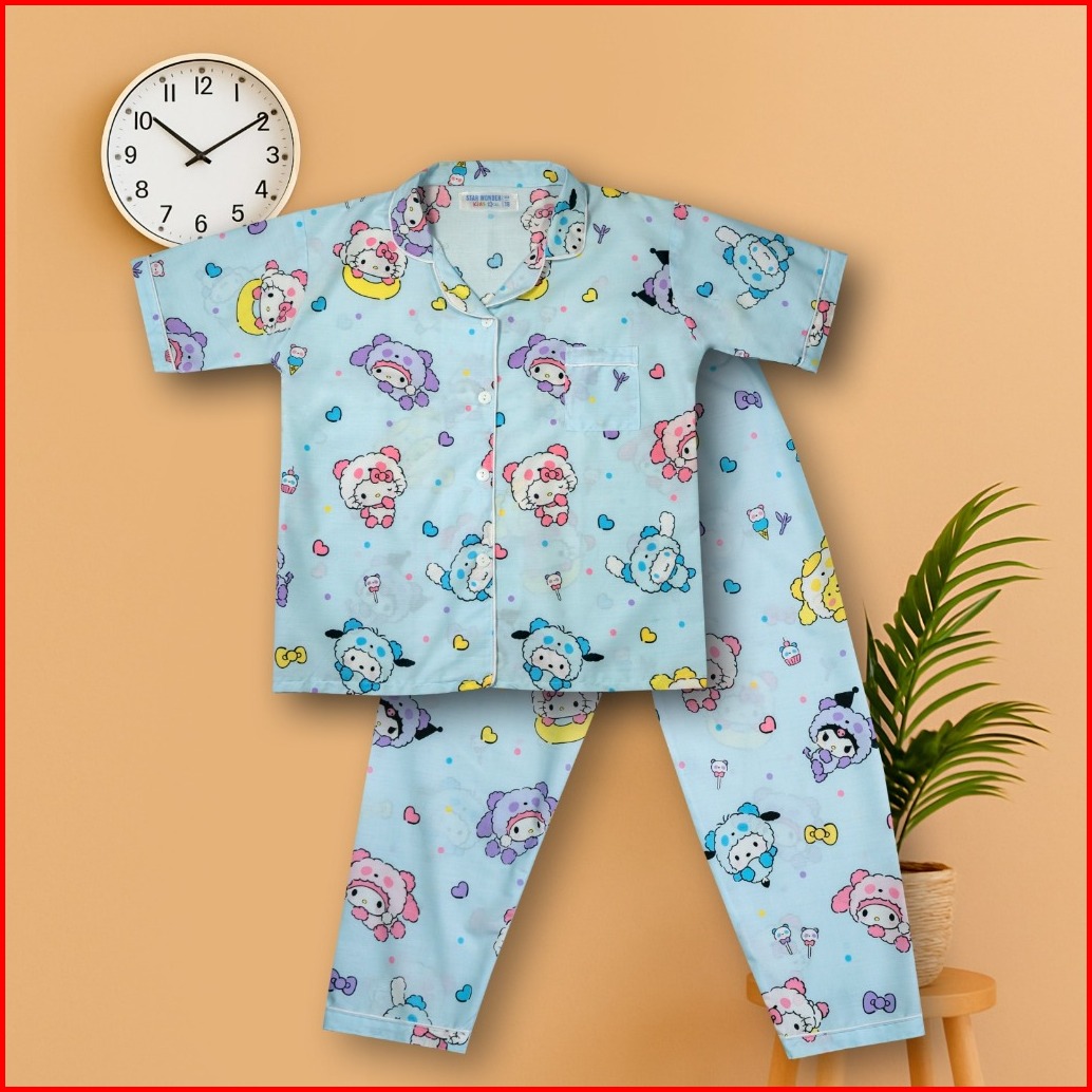 Piyama Kerah Katun Anak Lucu Karakter Kuromi Cinroll Baju Tidur Anak Perempuan Katun Lokal