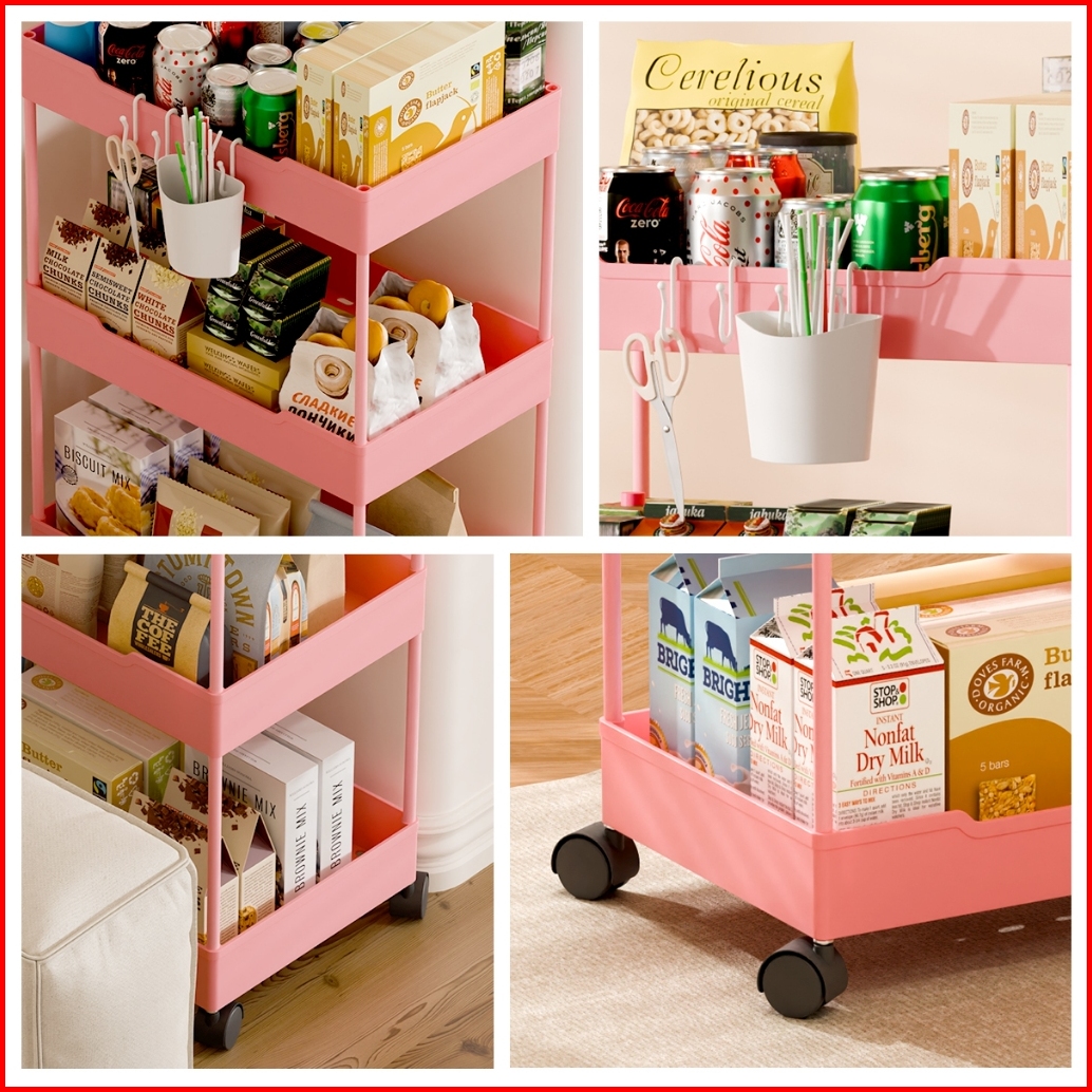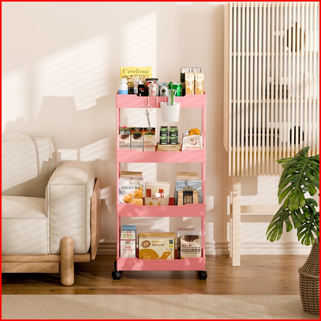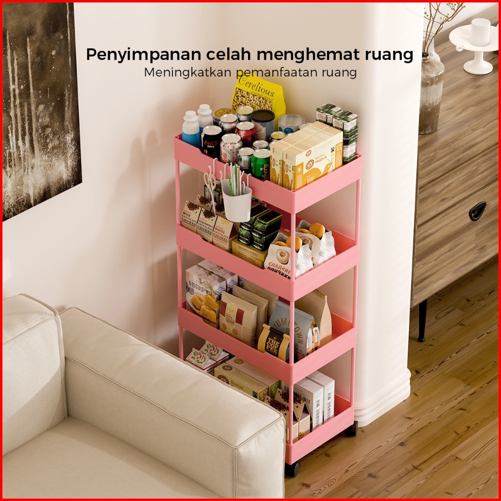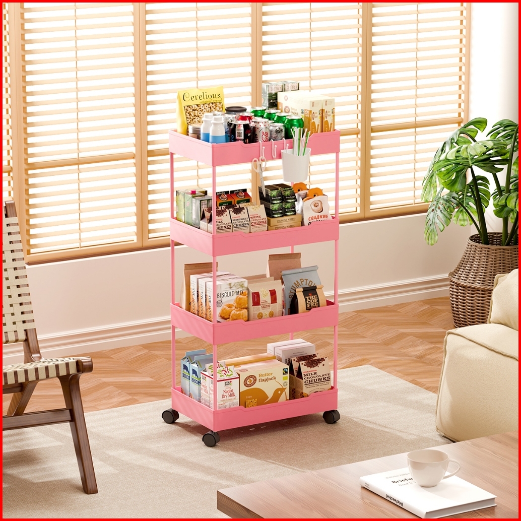 Homestorage Rak Susun Troli Square Rak Penyimpanan Makanan Plastik Rak Troley Rak Serbaguna 4 Tingkat Dengan Roda