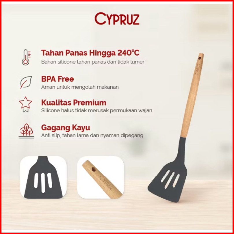 Cypruz Spatula Silicone Sutil Turner Silikon Tahan Panas